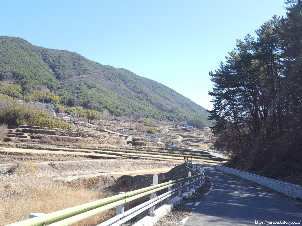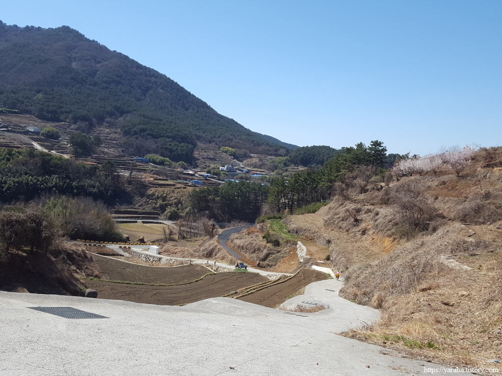 마을 뒤 조금 더 높은 언덕에 올라서니 계곡으로 층층이 들어선 다랭이 논들이 더욱 선명하다. 바다로는 한창 하역 중인 LNG선의 모습이 눈에 들어온다.