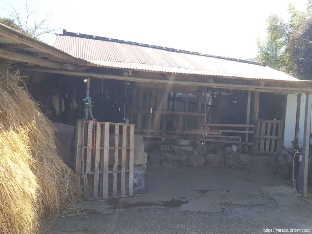 길은 우물마을을 관통하여 마을 좌측의 언덕으로 산을 오른다. 마을길을 지나다 보니 외양간에서 소를 키우는 집도 만난다. 이제는 더 이상 보기 힘든 그림이다. 이제는 기업형 축산만 남는 시대에 꼴베어서 먹이고 소죽 끓여서 먹이는 풍경은 이야기 속에서나 만날 수 있다. 특히나 이웃들과 부대끼며 살아야 하는 마을 속에서 외양간을 유지하고 있다니 신기할 따름이다. 이웃 잘못 만나면 골치 아플 텐데......
