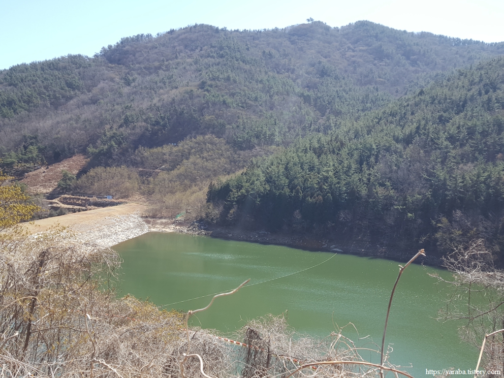 백년골 저수지를 지난다.