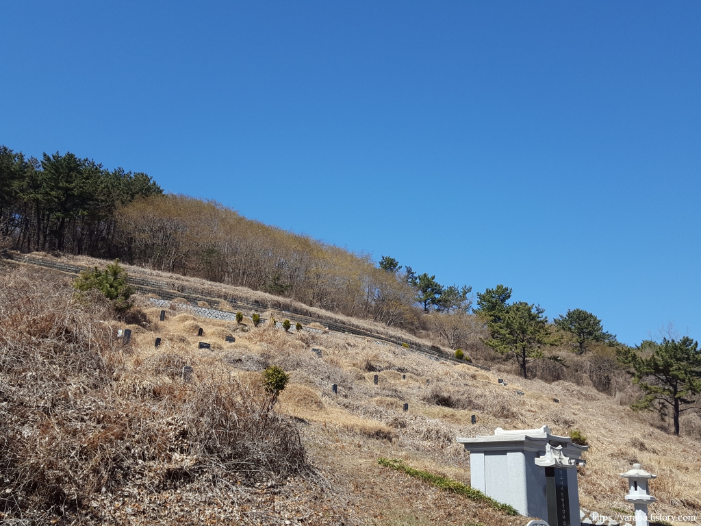 고개 너머로는 수많은 분묘들이 즐비한 공동묘지가 자리하고 있었다. 엄숙한 걸음으로 내리막길을 천천히 내려간다.