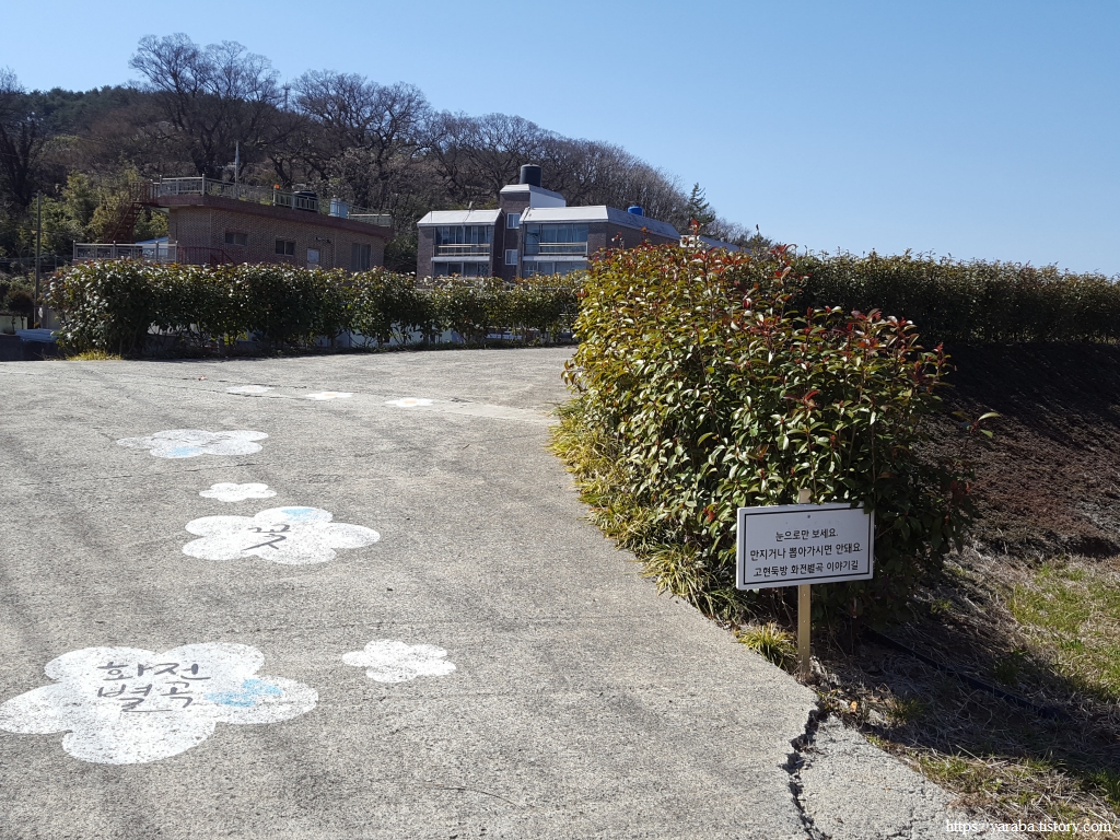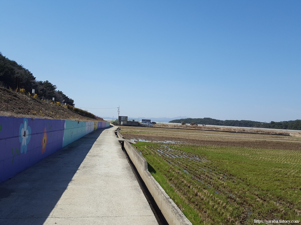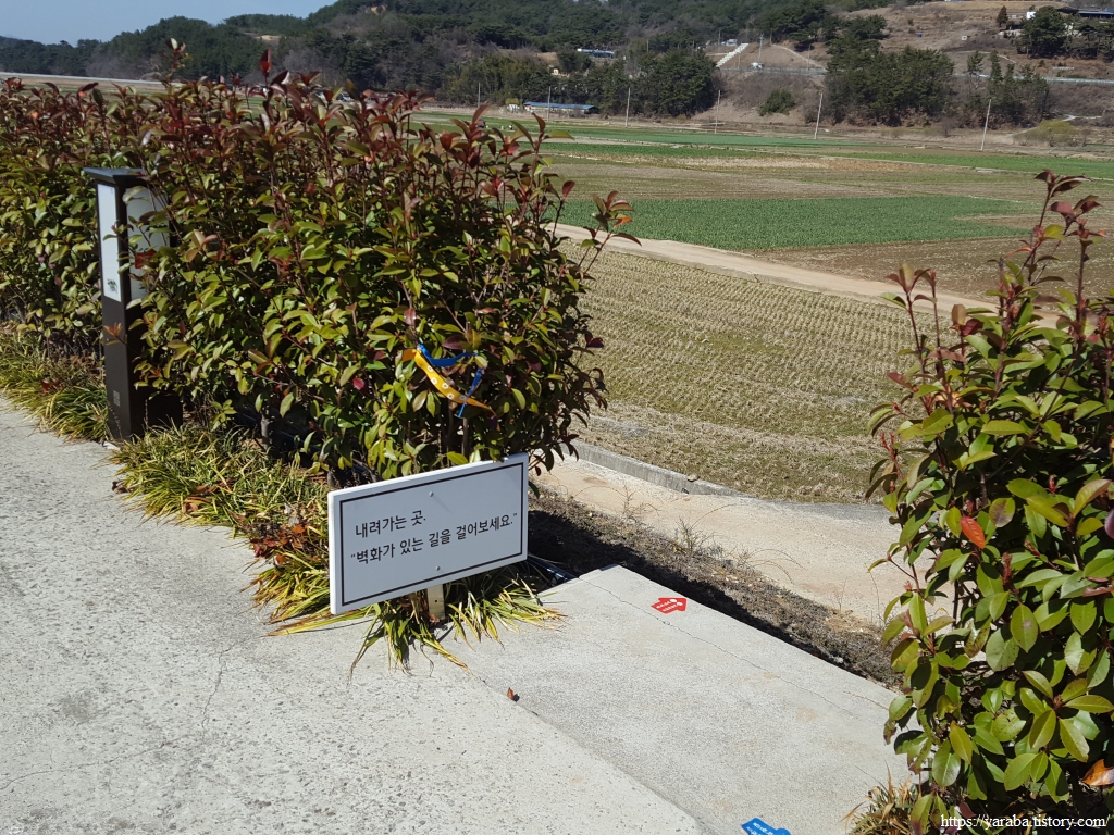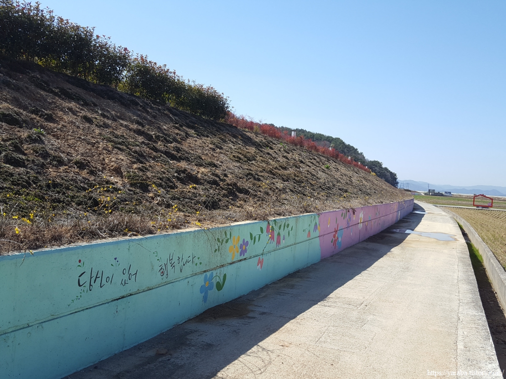 둑방길 위를 걷던 남파랑길은 둑방길에서 내려가 둑방길 아래로 벽화를 보면서 걷도록 인도한다.