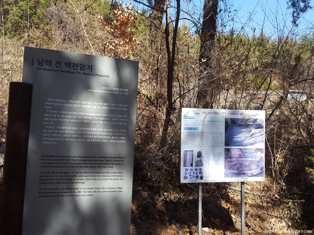 하산길에서는 백련암이라는 사찰이 있던 곳도 지난다. 지금은 별 흔적도 복원도 없지만 고려 대장경의 판각지로 추정하고 있다고 한다.