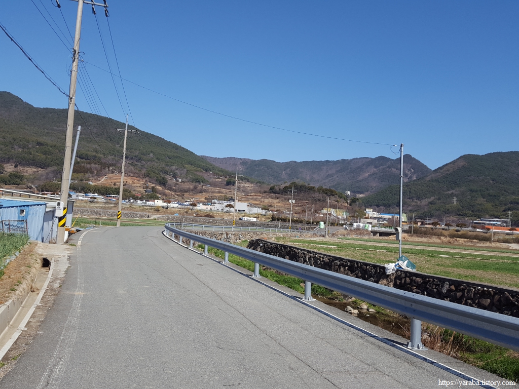 길은 포상마을 입구에서 우회전하여 고현면 읍내로 나간다.