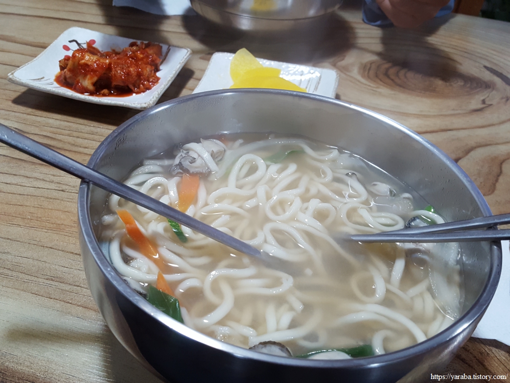 비 맞으며 걸었던 어제 서면 서상항에서 옆지기가 먹고 싶어 했던 따뜻한 칼국수를 고현 읍내에서 먹을 수 있었다. 가게 이름도 내부 구조도 예전에는 술을 팔던 곳이었을 같은 분위기였지만 주인장의 정성스레 내온 칼국수는 훌륭했다.