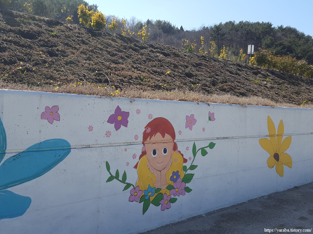 벽화에 그려진 빨강머리 앤 만화 주인공의 캐릭터가 옛 추억을 떠오르게 한다. 주근깨 투성이의 활달한 소녀가 이끌어가는 이야기가 시청자로 하여금 텔레비전에 몰입하게 하는 애니메이션이었다.