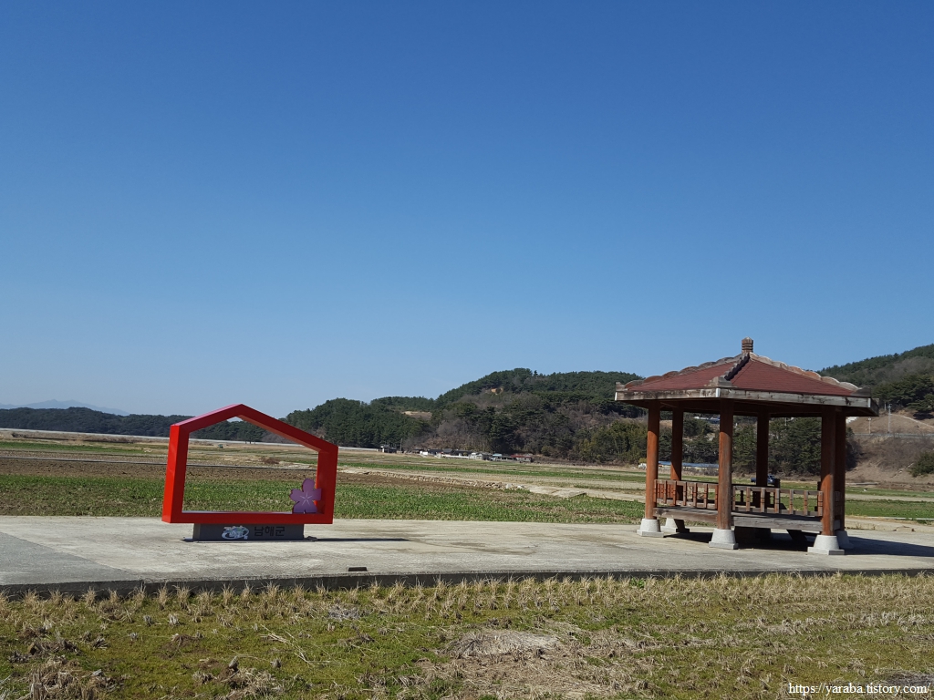 길은 읍내에서 최근에 만들어진 남해군 목공 체험 스튜디오 앞에서 좌회전하여 19번 국도 아래를 통과하여 대사천 천변길로 나아간다. 목공 체험 스튜디오가 만들어지기 이전의 거리뷰를 보면 허름한 건물과 재활용품을 모아놓는 지저분한 공간이었는데 남해군에서 새롭게 만든 모양이다. 2023년에 새로운 강의가 시작되는 모양인데 도시 경관도 좋아지고 주민들에게도 좋은 강의를 제공하는 기회가 되기를 바란다.