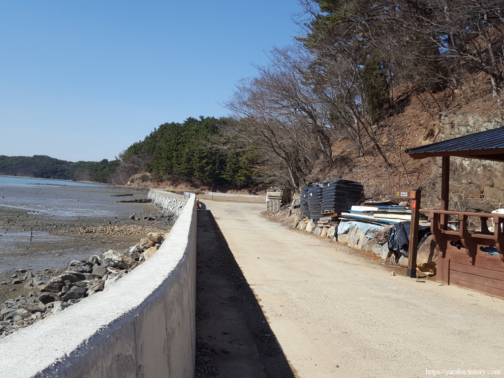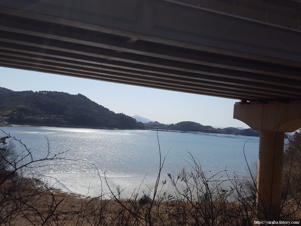길은 국도가 지나는 다리 아래를 둥글게 돌아서 간다. 도로변을 걷기는 하지만 차가 많지 않은 길에서 바다 풍경을 보면 조용히 걸을 수 있는 구간이다.