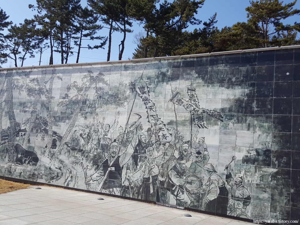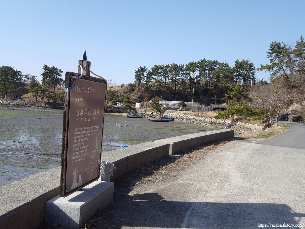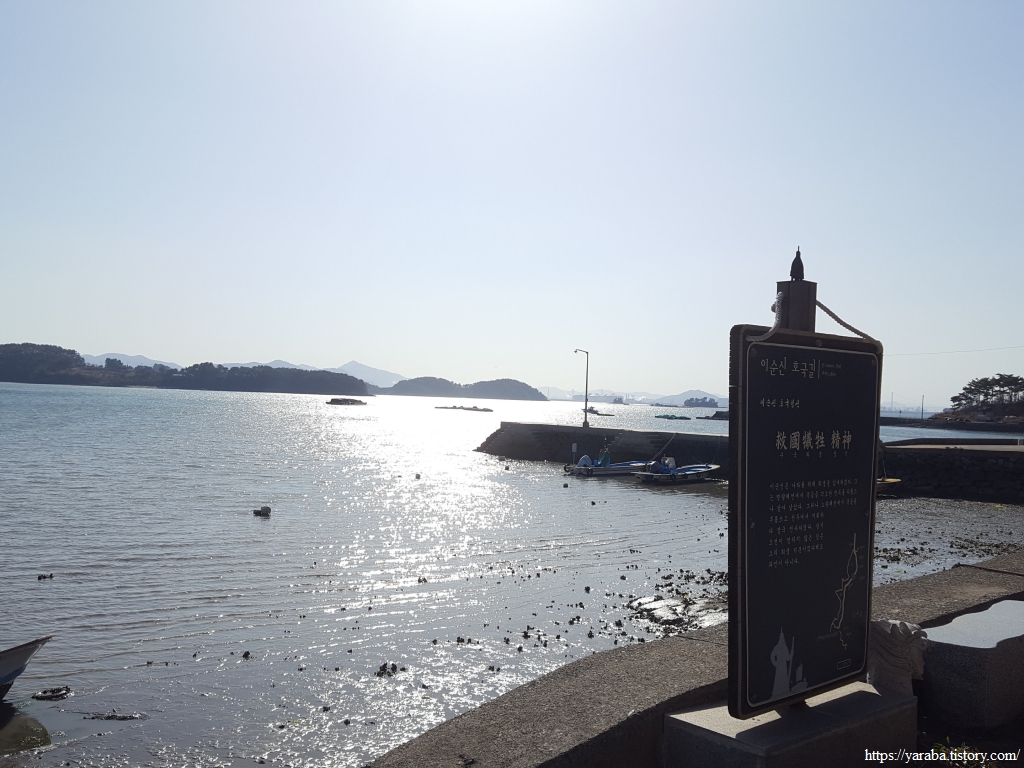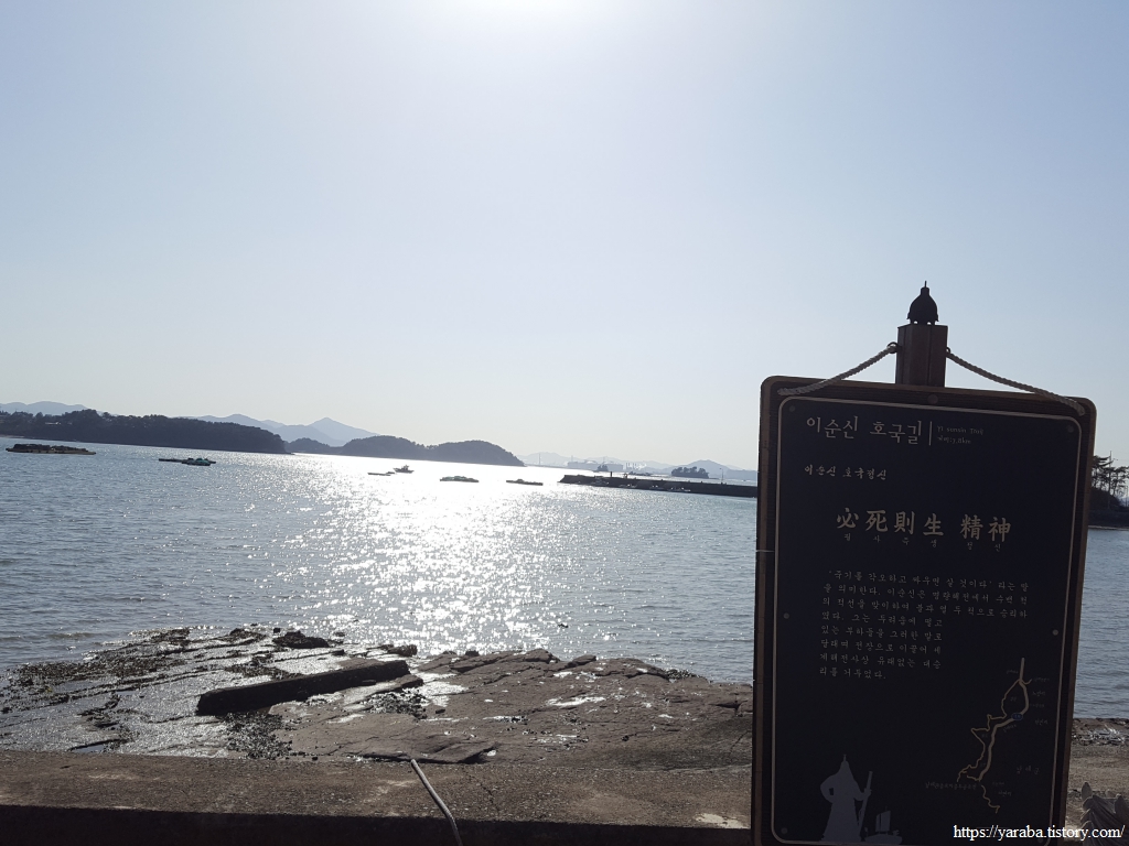 여러 개의 호국 정신을 세워져 있었는데 장군의 말 중에 가장 선명한 것은 그래도 필사즉생 필생즉사(必死則生 必生則死, 반드시 죽고자 하면 살고 반드시 살려고 하면 죽는다)가 아닐까! 성경에서 예수님도 비슷한 말씀을 하셨는데 요한복음에 보면 "자기 생명을 사랑하는 자는 잃어버릴 것이요 이 세상에서 자기 생명을 미워하는 자는 영생하도록 보존하리라"라는 구절이 있다. 어적보민(禦敵保民)은 잘 모르던 말로 "적의 침략을 막아 백성을 보호하는 일"을 말한다. 서쪽으로 강렬한 태양을 두고 해안 길을 이어간다.