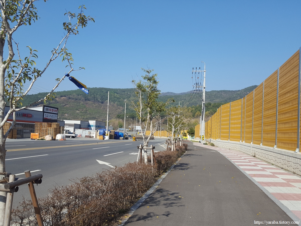 도이동 인근으로는 거대한 방음벽이 세워져 있었는데 아마도 우측에 진행되고 있는 성황 도이지구 도시개발사업 때문인 모양이다. 부지 조성은 끝났고 아파트가 한참 올라가고 있다.