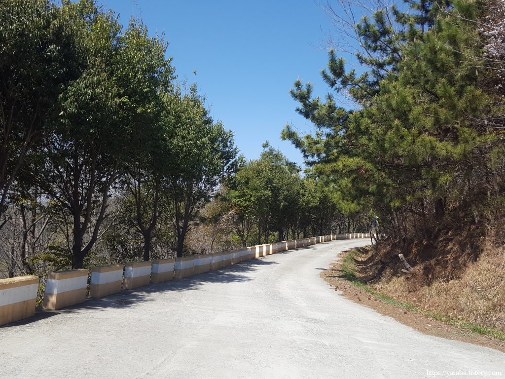 오르막길을 조금 오르니 동쪽으로 광양 가야산 자락에 포근하게 안겨 있는 광양 시내가 눈에 들어온다. 대부분이 아파트 단지이다. 30평대가 넘어가면 2억을 넘기니 수도권과 다를 바가 없는 것 아닌가 싶다. 아무튼 길을 돌려 오르막길을 이어간다. 임도 양쪽으로 나무들을 가지런히 심어 놓아 잘 정비된 산책길과 다를 바가 없다.