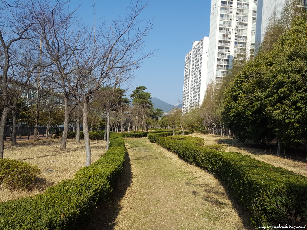 아파트 단지로 제철로 도로 사이의 중동 근린공원에서 17.6Km의 여정을 시작한다. 구름 한 점 없는 푸른 하늘 아래로 봄기운이 살아나고 있는 공원을 걸으니 기분이 상쾌하다.