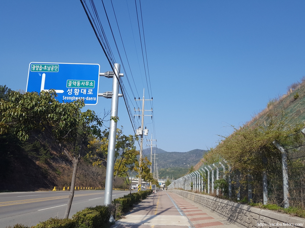 남해 고속도로 동광양 IC에서 광양항으로 이어지는 광양항 전용 도로 다리 아래를 통과하여 제철로 옆의 인도를 따라 길을 이어간다. 제철로 바로 좌측으로는 광양제철선 철도도 같이 가는 길이다.