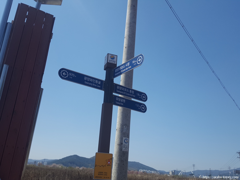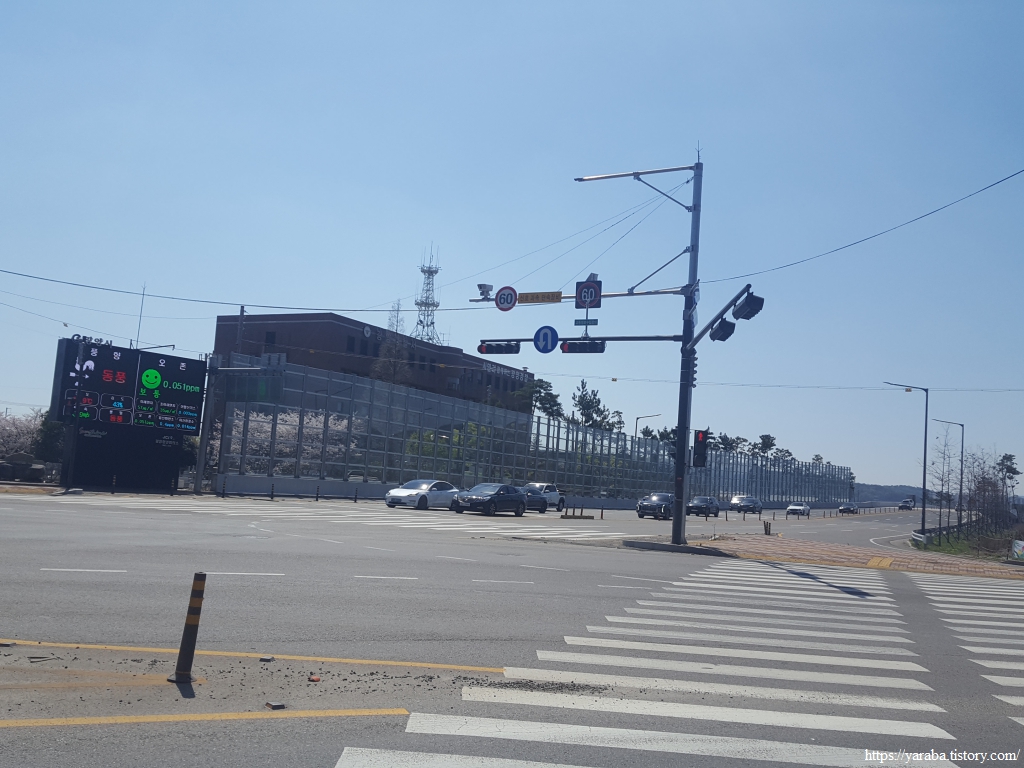 커다란 전광판에서 환경 정보를 제공하고 있는 광양 경찰서 앞에서 우회전하여 길을 이어간다. 종점까지 1.6Km만 더 걸으면 된다. 광양 제철소 근처에서는 산업단지 특유의 냄새를 피할 수 없었는데 이제는 그 냄새로부터 어느 정도 멀어진 듯하다.