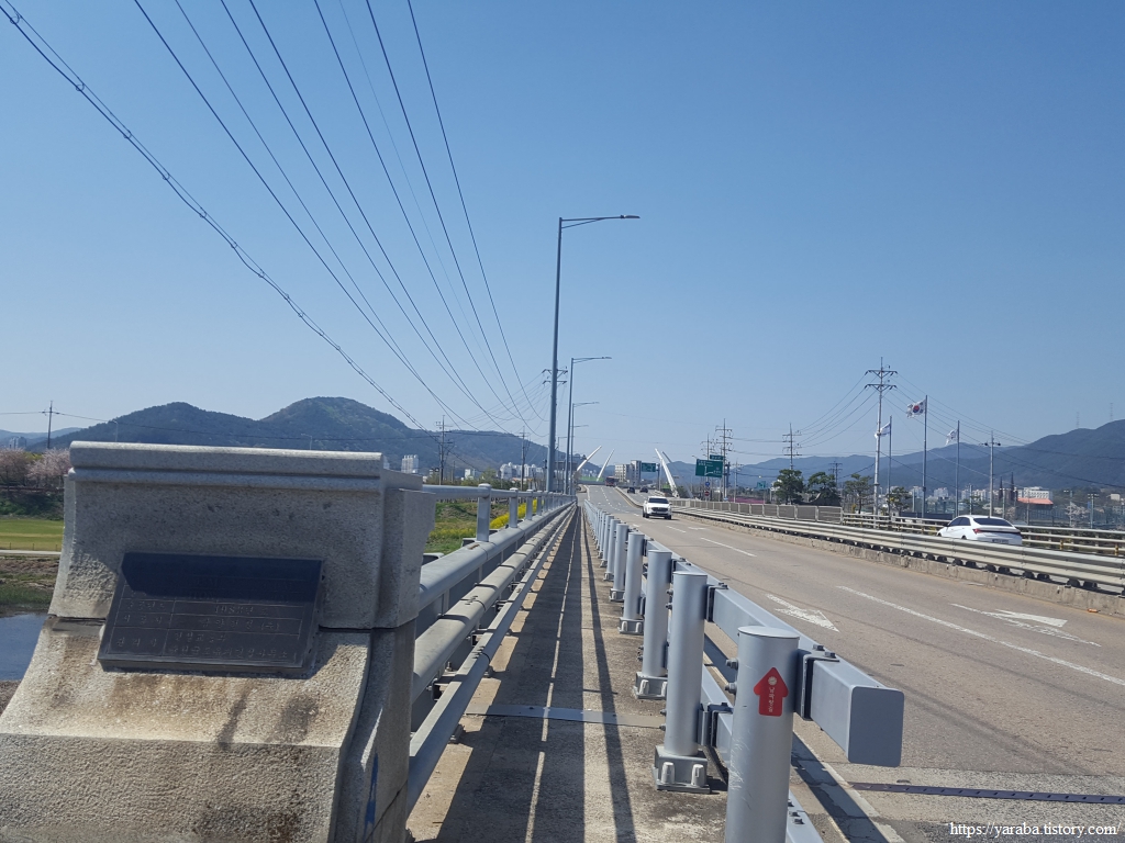백운로 도로를 따라 광양읍내로 들어가는 길이 차들이 쌩쌩 달리는 국도변 이기는 하지만, 안전한 인도가 있어 다행이다. 바다가 멀지 않은 광양 동천을 초남교 다리로 건넌다.