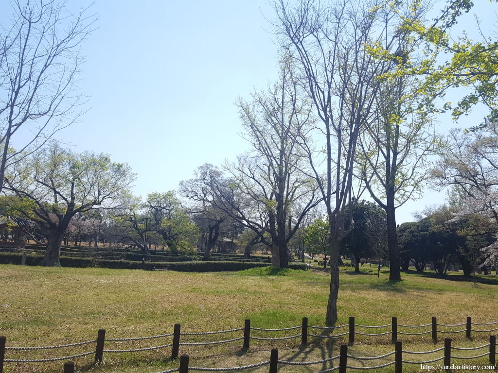 길은 유당 공원을 좌측으로 휘감아 돌아간다. 공원 잔디에도 서서히 봄이 입혀지고 있다.