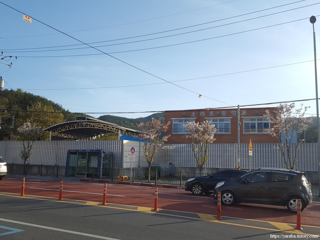 덕양로 도로로 나온 길은 소라 초등학교 앞에서 여정을 마무리한다.