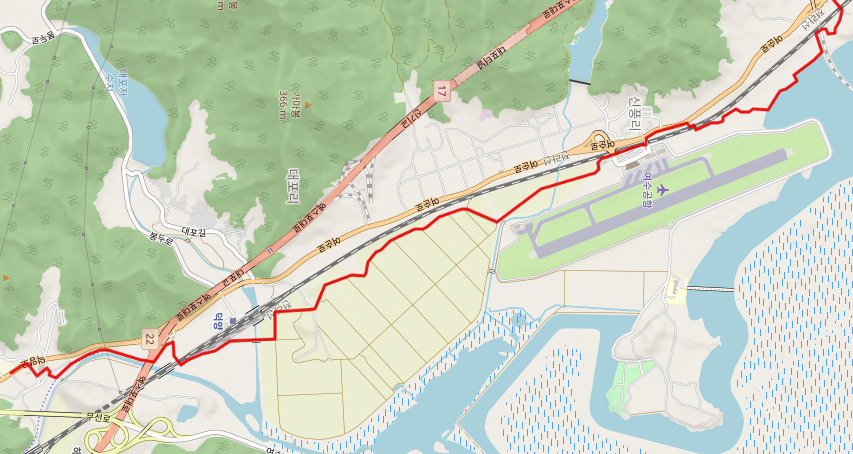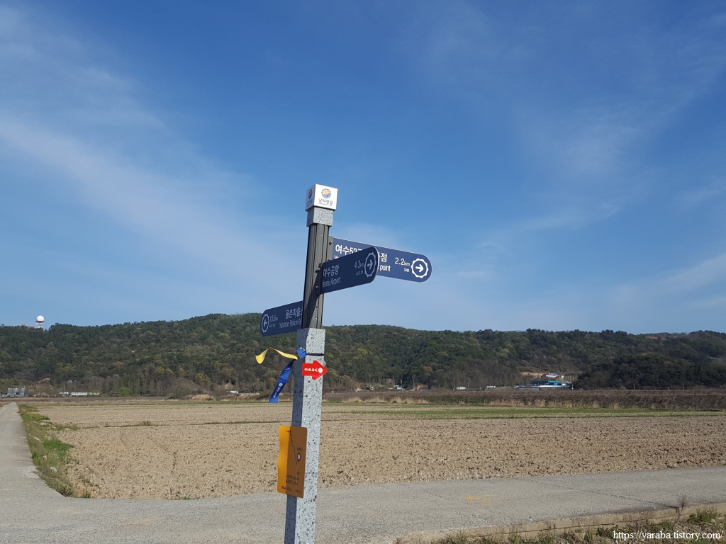 마을을 빠져나온 남파랑길은 여순로 도로를 따라서 여수 공항으로 향한다. 52코스 절반이 지났다.