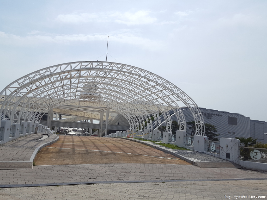 휑한 엑스포 광장을 지나 해변으로 나간다. 엑스포 주제관 건물 방향으로 이동한다.