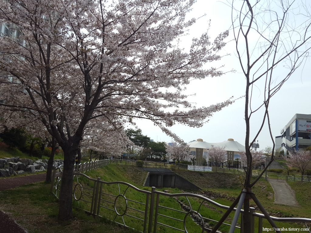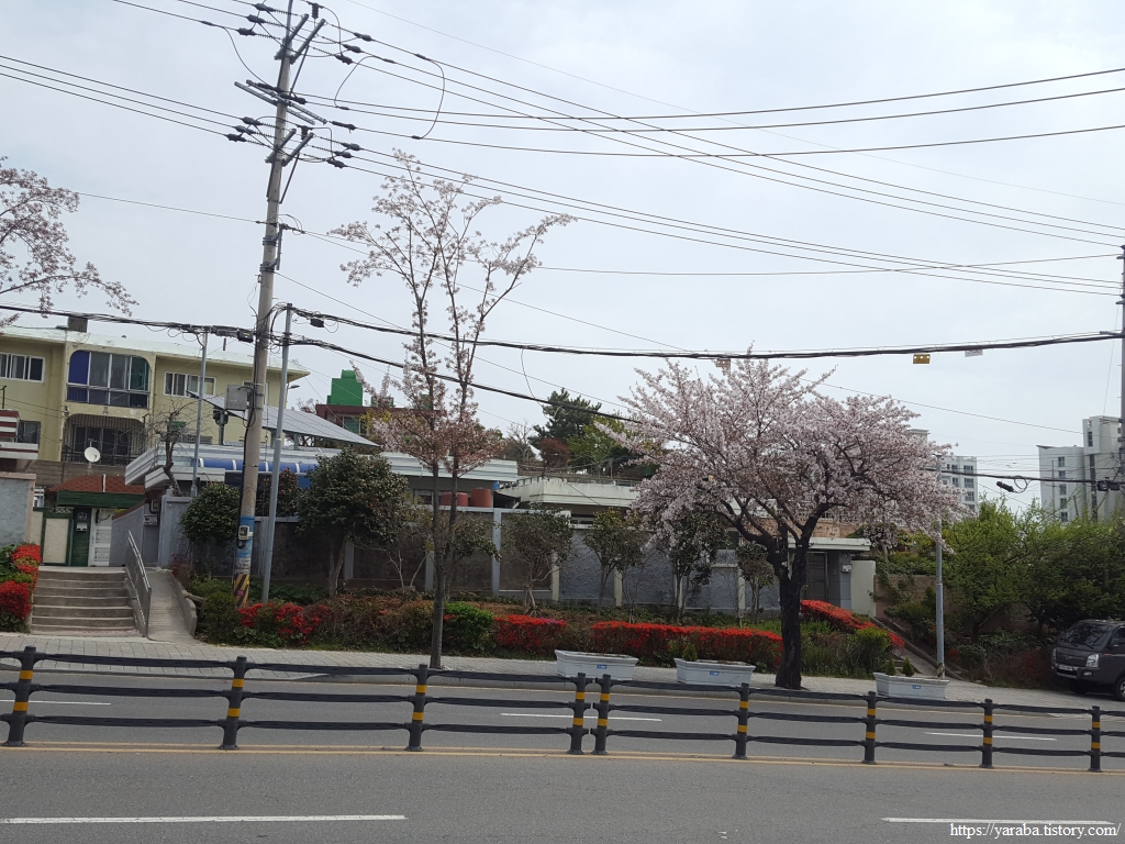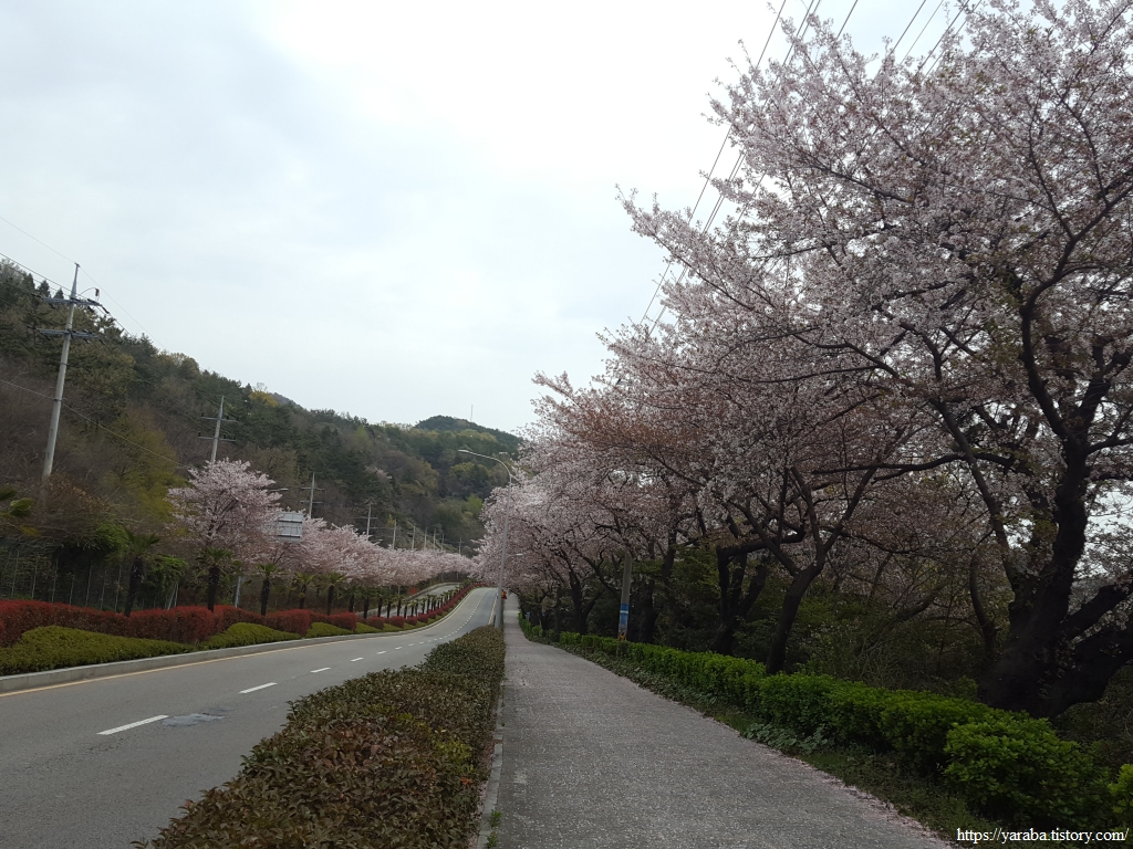 보행로는 눈처럼 흩날리던 하얀 벚꽃이 가득하다. 올해도 남파랑길을 걸으면서 벚꽃놀이를 제대로 한다.