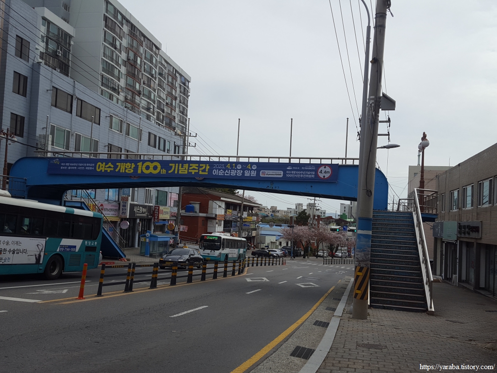 여수를 소개하는 입간판에서 여러 가지 정보를 얻는다. 2023년이 여수 개항 100주년으로 4월 1일부터 4일까지 여러 행사를 벌이고 있다는 소식과 여수 산업단지 인근에 있는 영취산에서 진달래 축제가 열린다는 것이다. 방문했을 당시는 개항 100주년 기념 주간의 마지막 날이었다.
