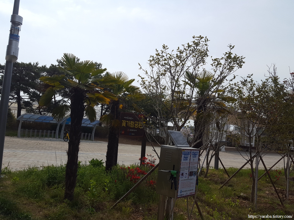 자산의 전망대와 케이블카 승차장으로 연결되는 공영 주차타워. 길은 오동도 입구에서 우측 계단을 통해 자산을 올라야 하는데 알고 보니 주차타워의 엘리베이터를 타고 올라갈 수 있는 방법도 있었다. 오동도 입구는 평일임에도 사람들로 북적북적하다.