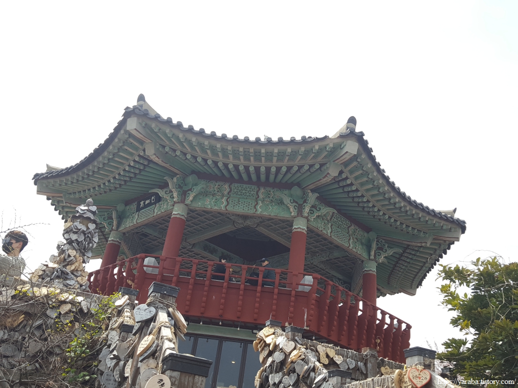 자산공원 팔각정에 올라서니 그야말로 소원을 비는 하트 나무 투성이다.