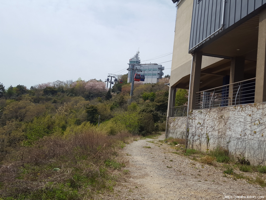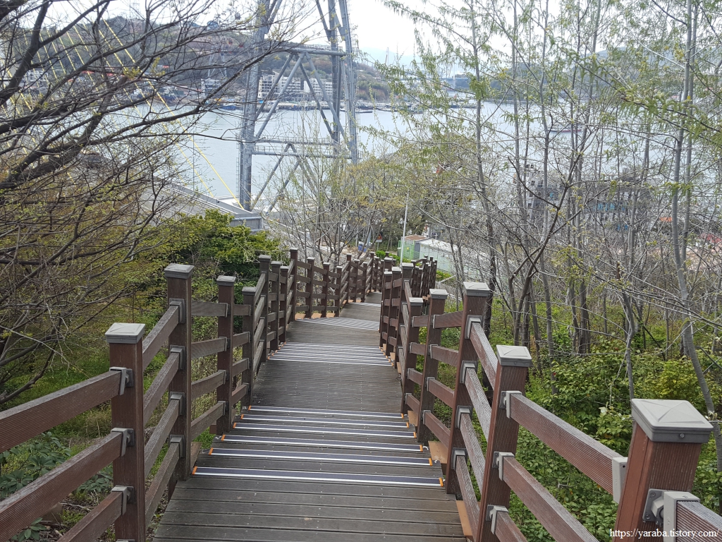 남파랑길은 해상 케이블카 승차장 뒤를 돌아 자산 공원으로 향하지만 케이블카 승차장과 공영 주차장 타워, 팔각정 주위로는 짧게 산책을 다녀가도 좋을법한 산책길과 전망대가 있었다.