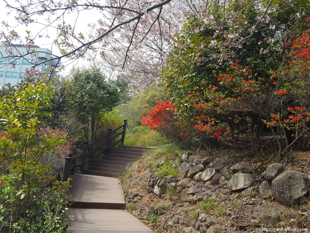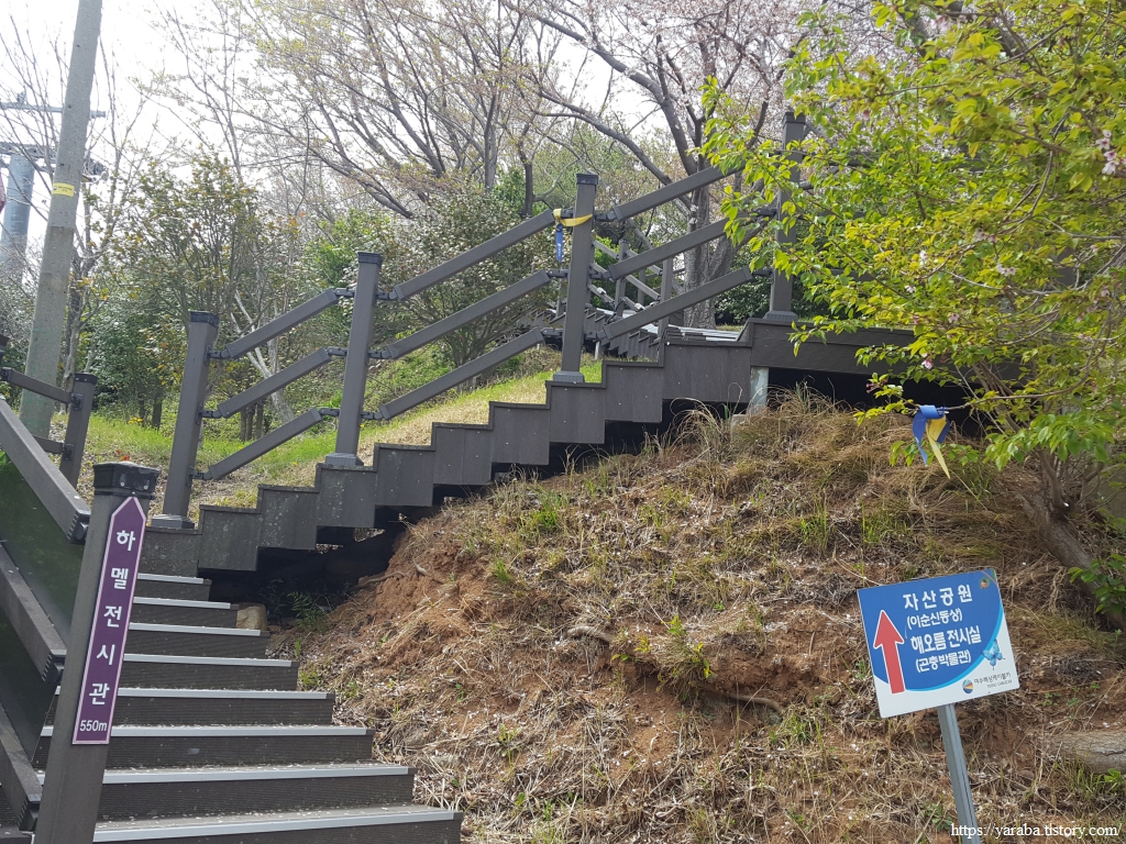 자산공원으로 오르는 길, 이곳부터 산 아래의 하멜 전시관을 안내하고 있다. 공원에 있는 곤충 박물관도 이곳으로 갈 수 있다.