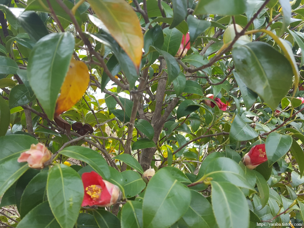 아직 완전히 떨어지지 않은 동백꽃이 고맙다. 오동도 동백 군락지에서 동백을 보지 못하는 아쉬움을 달래준다.