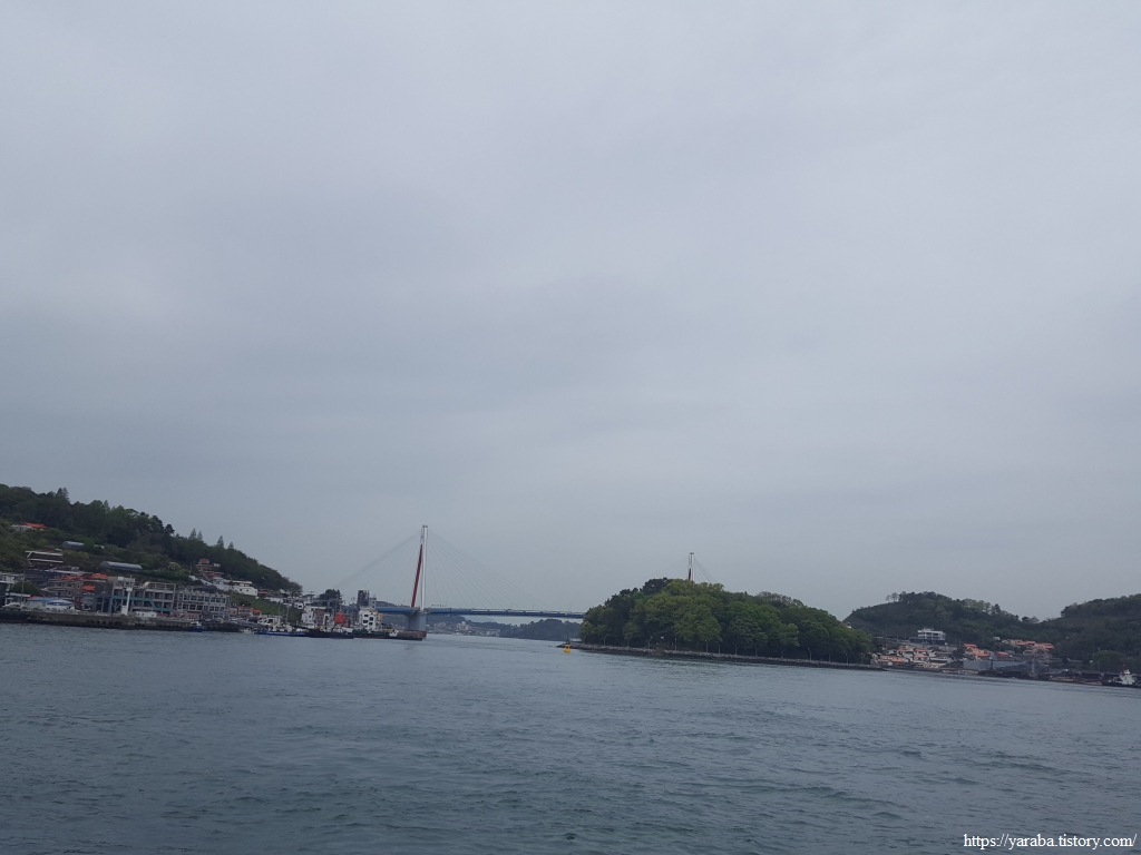 돌산대교를 지나며 바라보는 여수구항과 장군도의 모습이다. 멀리 거북선대교와 해상 케이블카의 모습도 당머리 해안을 지나면 더 이상 볼 수 없을 것이다.