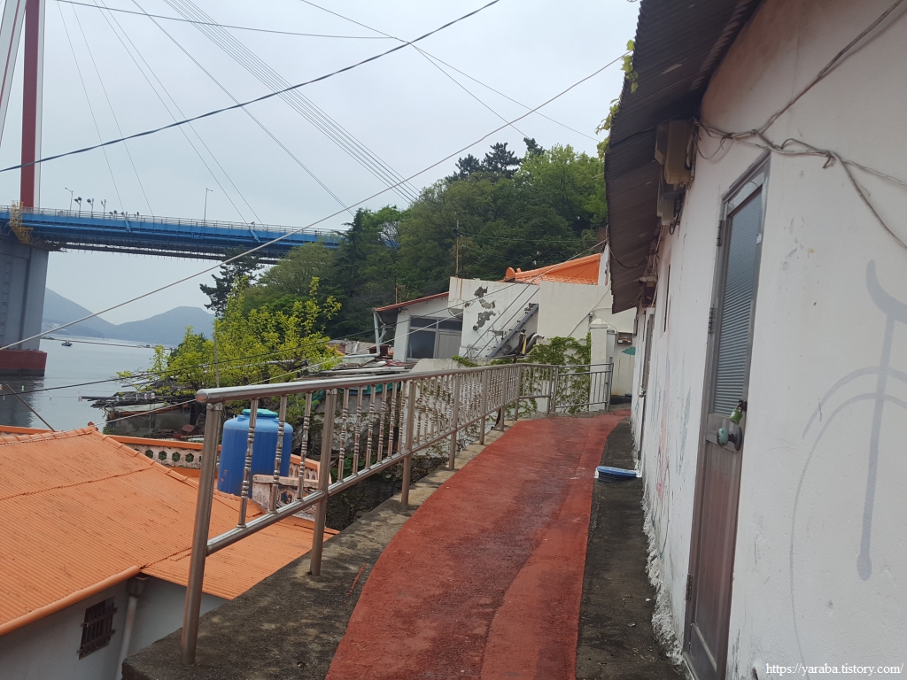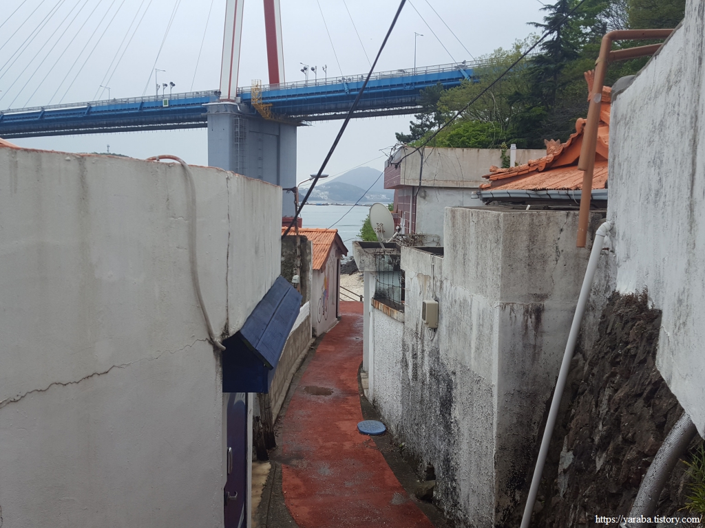 한 사람이 겨우 지날 수 있을 것 같은 마지막 골목을 빠져나오면 돌산대교 앞으로 나온다.