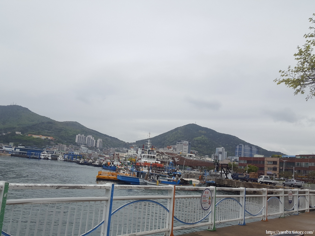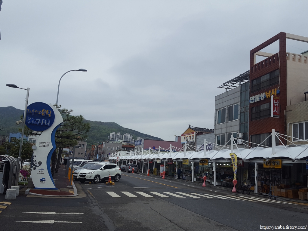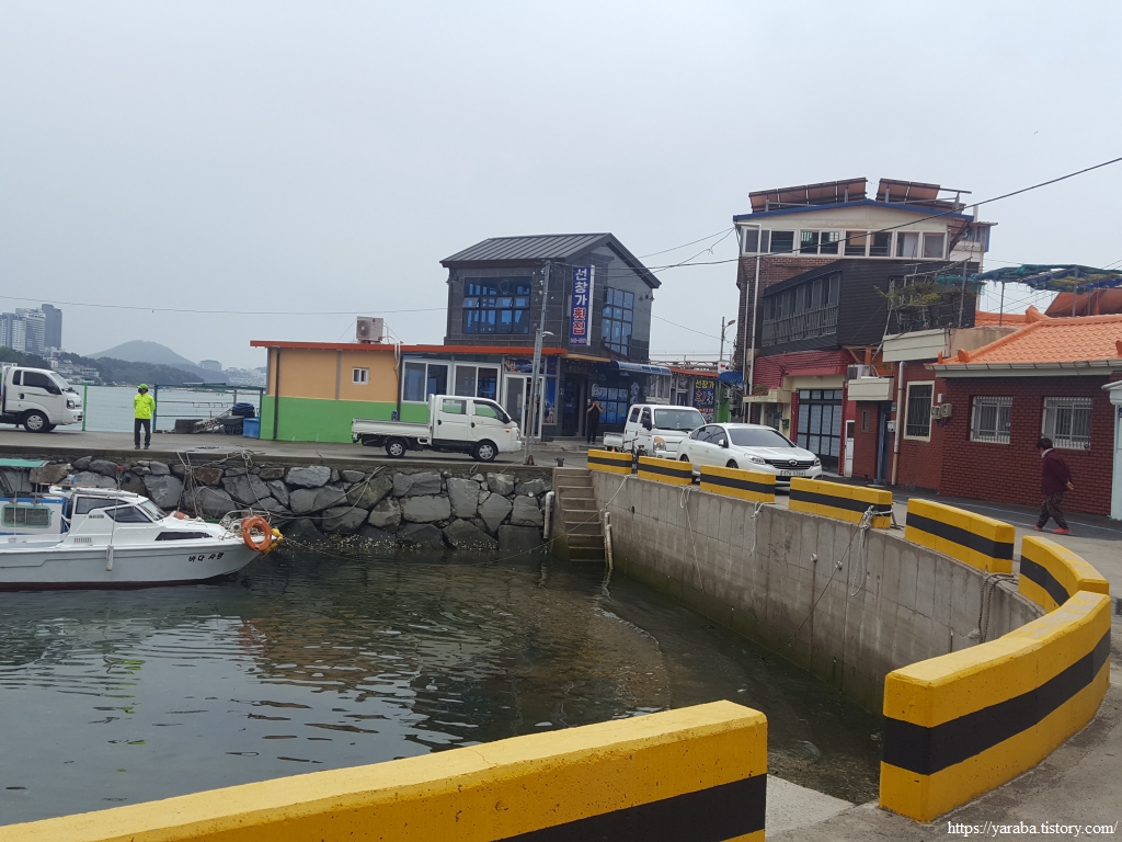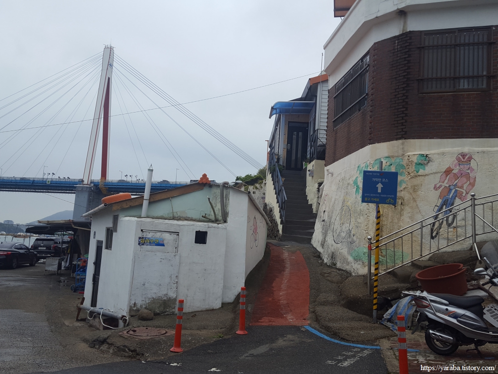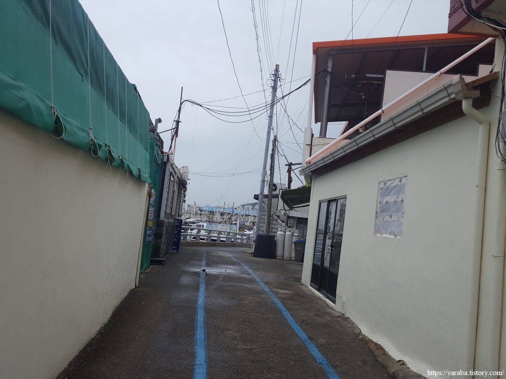 당머리 해안을 지나면 수협 위판장 뒤를 지나 서쪽으로 향한다.