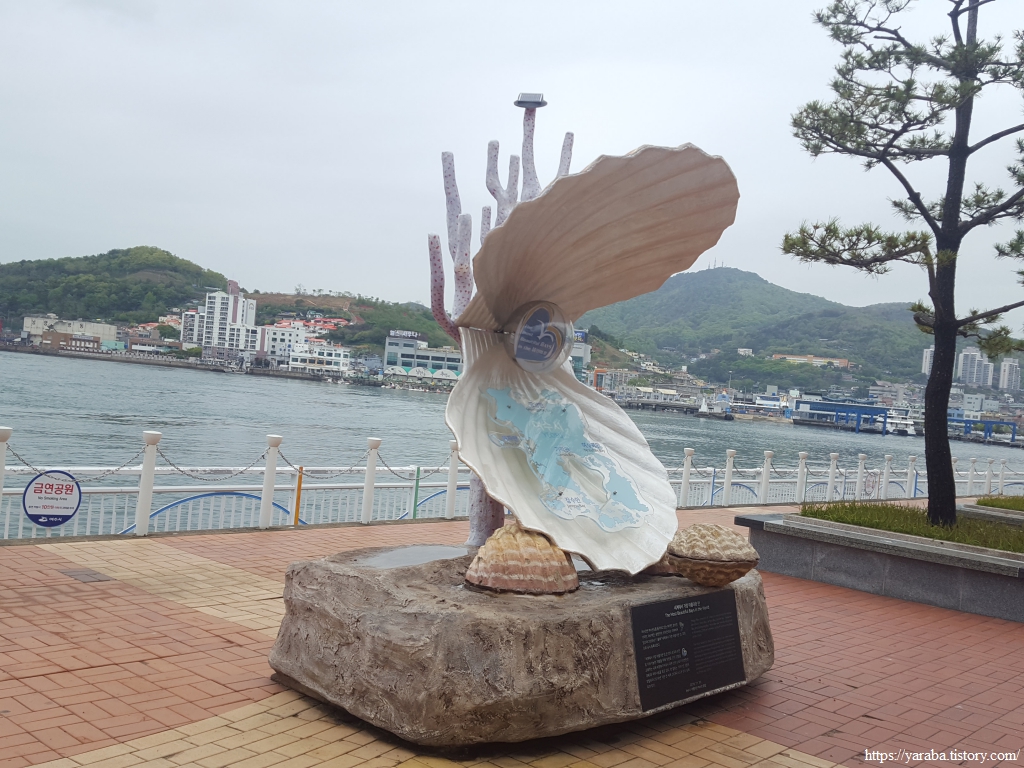 특산품 전시장에도 장어가 등장하는 것을 보니 많이 잡히는 모양이다. 조금 있으면 지나갈 대경도, 소경도가 갯장어 주산지라고 한다. 갯장어와 아나고라고 부르는 붕장어는 다르다고 하는데 장어 문외한에게 장어 구분은 완전히 다른 세계다. 국동항 수변 공원에서 잠시 쉬어간다.