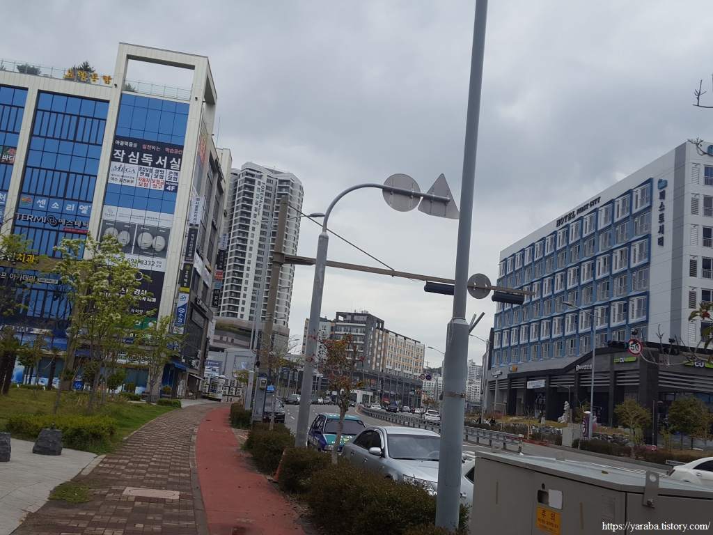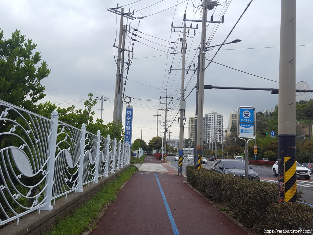 뒤로는 멀리 히든 베이 호텔이 랜드마크 역할을 하고 있고 앞으로는 웅천동의 대단위 아파트 단지가 우리의 갈 길을 알려준다.