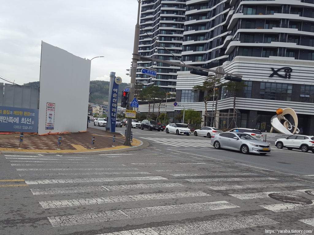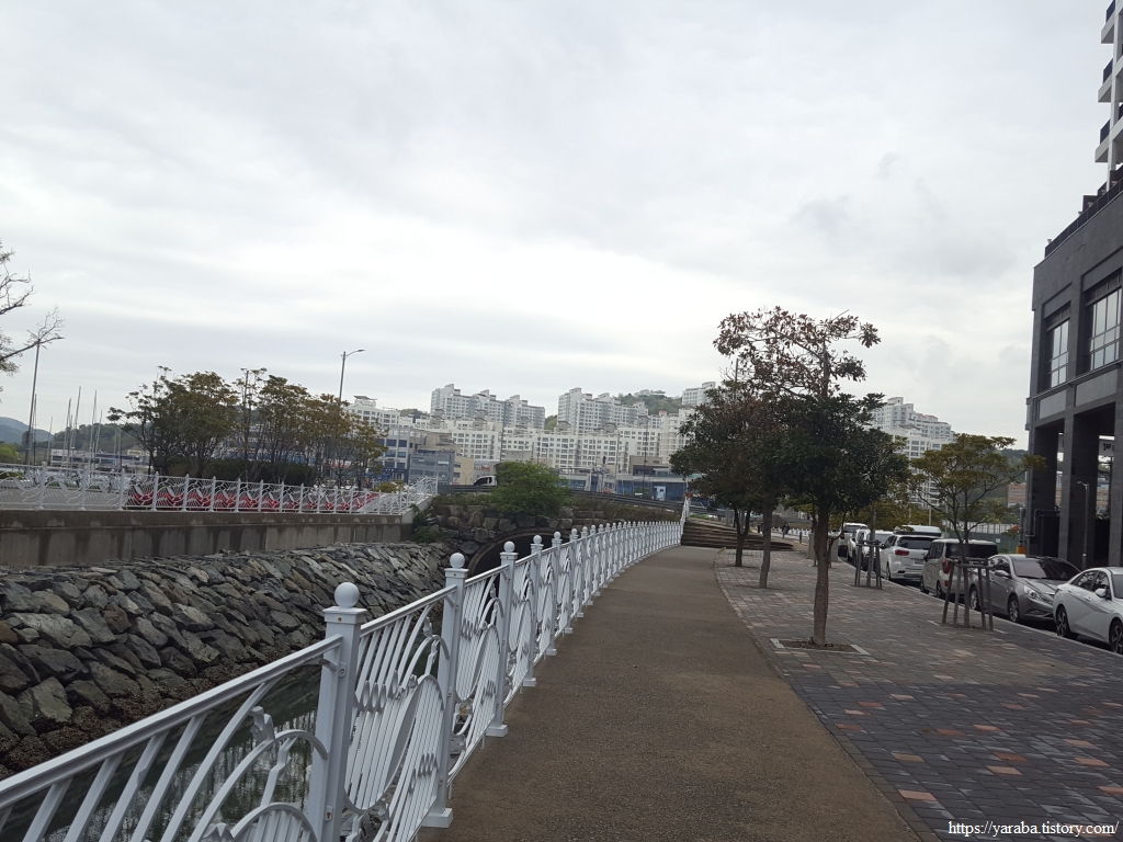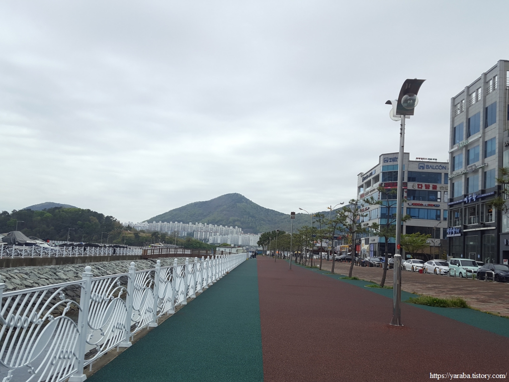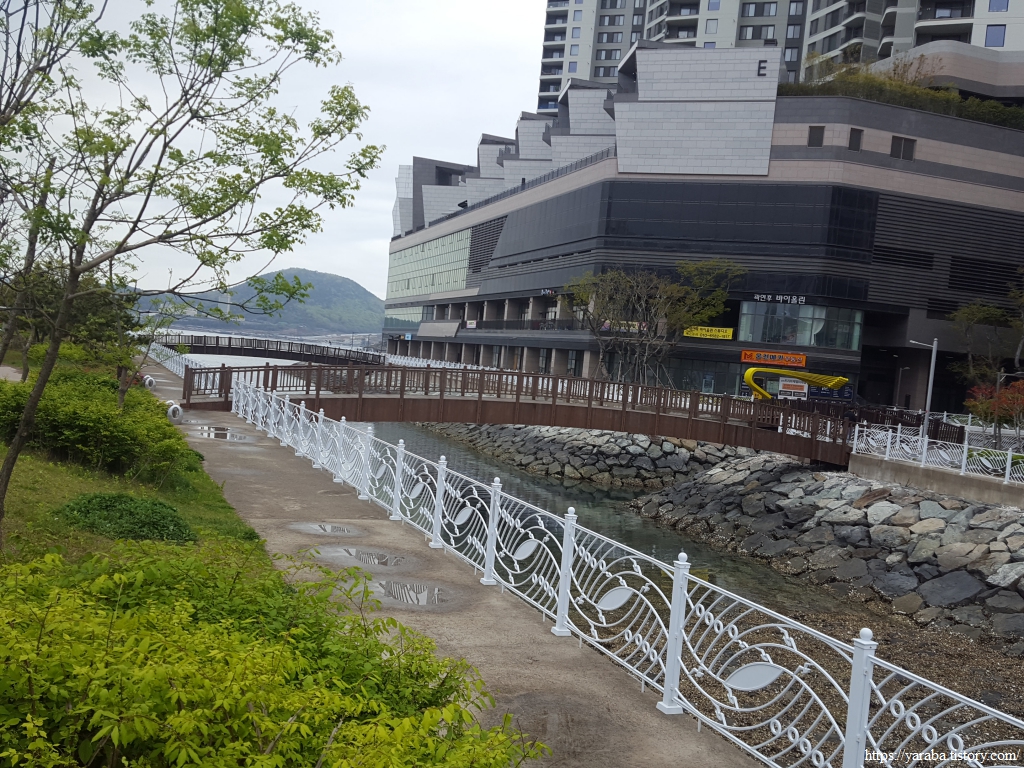 빌딩과 이순신 마리나를 지나니 저곳이 섬이구나 하고 실감을 한다. 고층 아파트를 뒤로하고 해만으로 나가면 웅천 친수 공원으로 가게 된다.