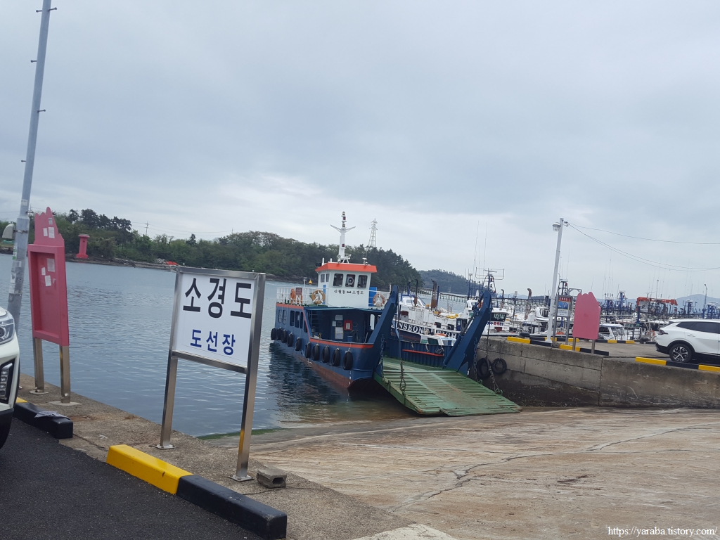 선착장에는 "경도 갑니다"라고 크게 써 붙인 배가 사람들을 기다리고 있다. 골프장과 리조트도 있으니 평범한 섬은 아닌 모양이다.