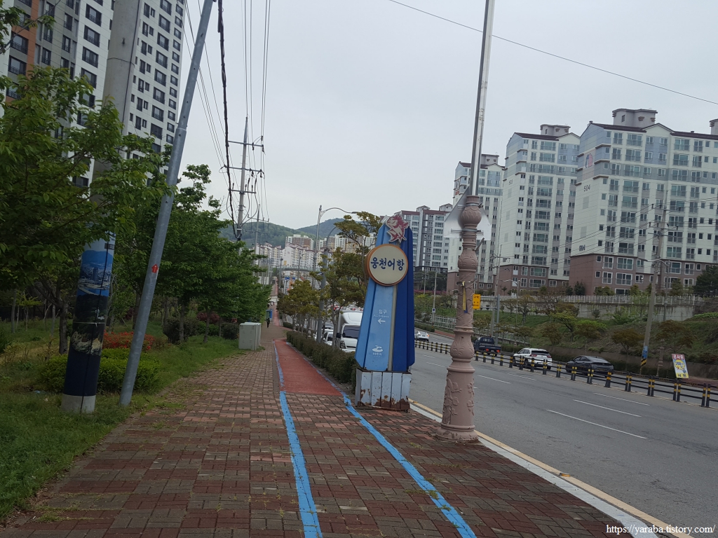 시가지로 들어서면 사거리에서 좌회전하여 신월로 벗어나 이제는 웅천로를 따라 신시가지를 가로지른다. 웅천어항이라는 표식이 있으나 아파트 단지 속에서 초라해 보인다.