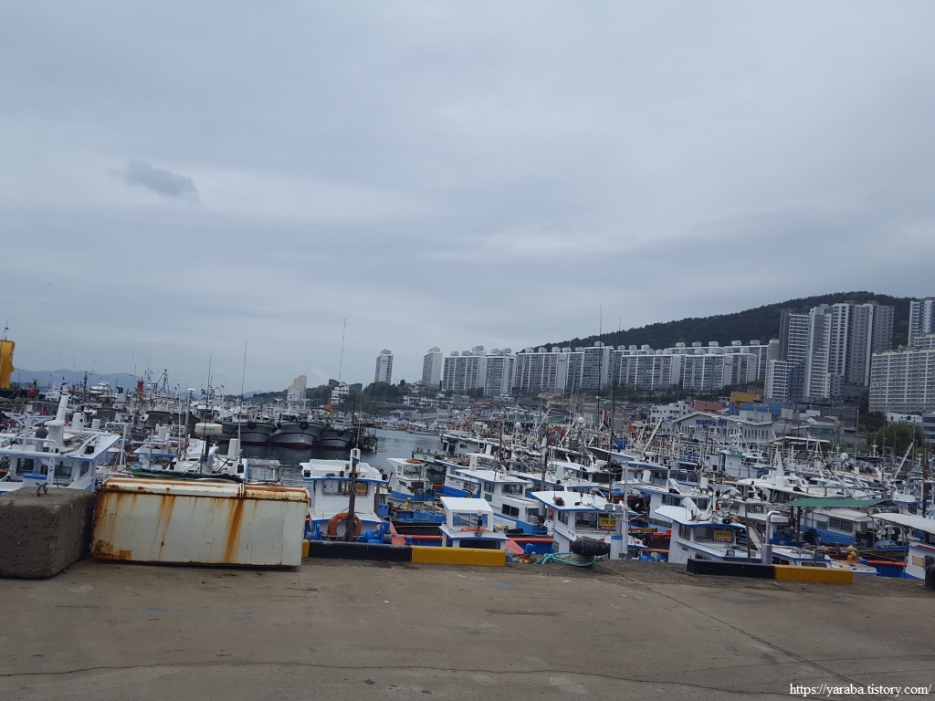 항구에 정박한 엄청난 수의 어선들도 놀랍지만 구봉산 자락에 자리하여 스카이 라인을 장악한 고층 아파트들도 신기하기는 매 한 가지다.