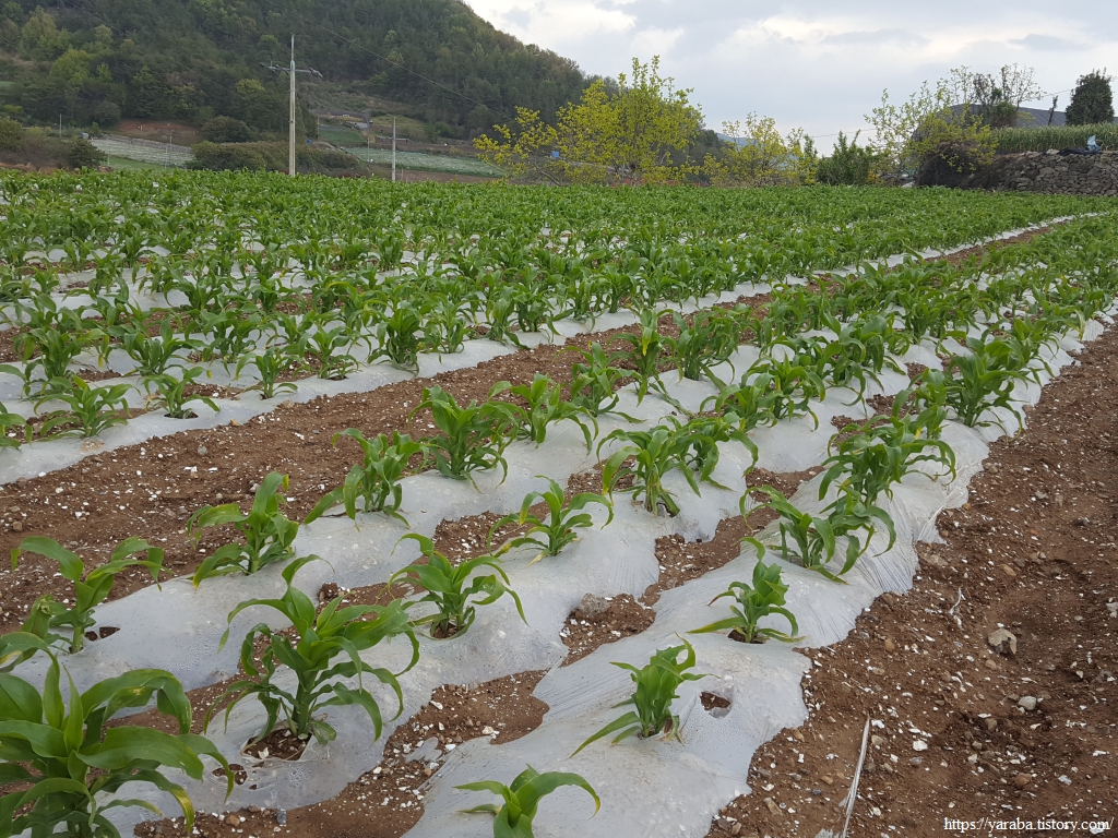 용주리 밭 곳곳에는 바닷 바람을 맞으며 옥수수가 무럭무럭 자라고 있었다. 옥수수 하면 강원도 옥수수만 생각했는데 여수는 전라남도 옥수수 재배의 15%를 차지할 정도로 재배 면적이 상당했다. 그리고 강원도 보다 한 달 일찍 옥수수를 수확할 수 있다는 장점이 있다고 한다.