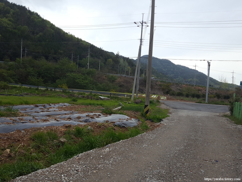 잠시 뒷길로 빠졌던 길은 다시 화양로 큰길로 나와서 횡단보도로 길을 건너 반대편 도로 갓길을 한동안 걸어야 한다. 갓길을 걷다 보면 웅동교차로를 만나는데 우회전하여 옥적리 방향으로 가면 화양면을 가로질러 서쪽 반대편으로 갈 수 있다.