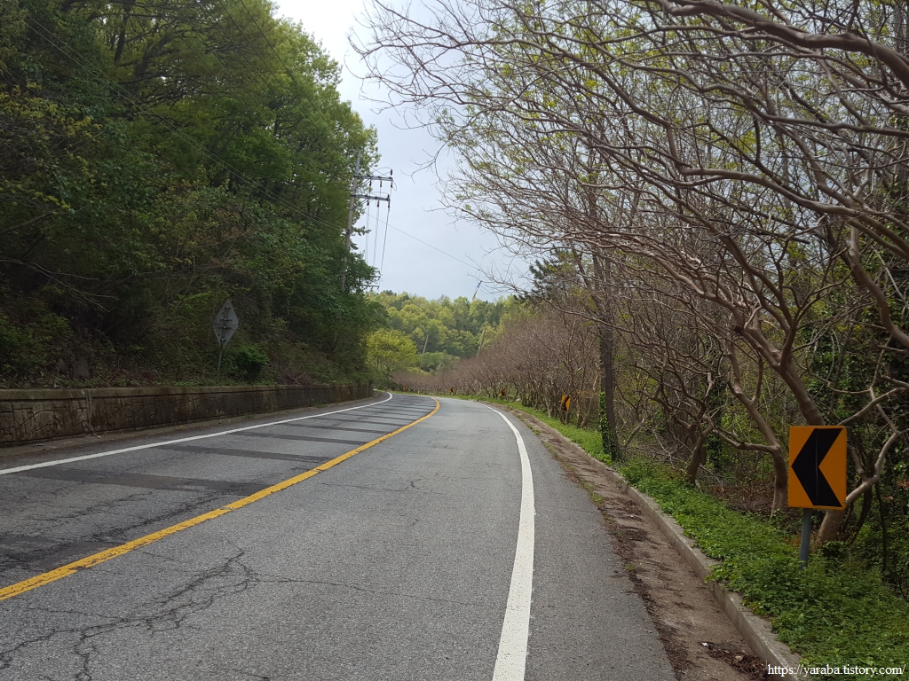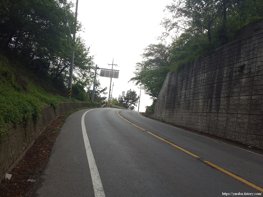 둑방길을 지난 남파랑길은 오르막길을 통해서 화양로 큰길 방향으로 이동한다.