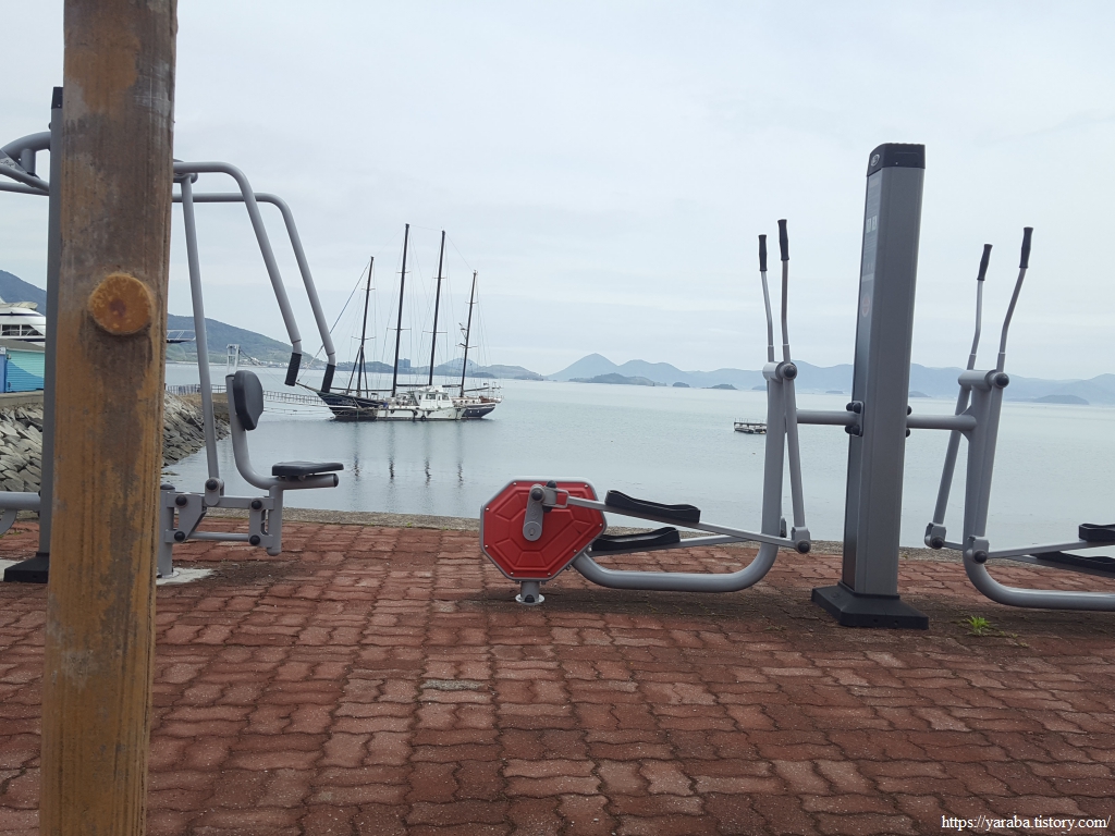 요트장 인근의 체육시설이 있는 곳에서 잠시 휴식을 취하고 길을 이어간다. 요트장 앞에 정박된 범선 모양의 요트를 보니 한편으로는 요트를 소유 혹은 이용하는 사람과 그렇지 않은 사람 간에 확연한 차이가 있는 것이 아닌가 하는 생각이 든다. 작은 요트야 누구나 접근할 수 있는 레저 스포츠지만 저런 요트는 부유층의 전유물이 아닌가 싶다. 골프가 상류층의 전유물인 시대에서 대중화의 길을 걸었던 것과 같은 길을 요트가 걷기에는 한계가 있어 보인다.