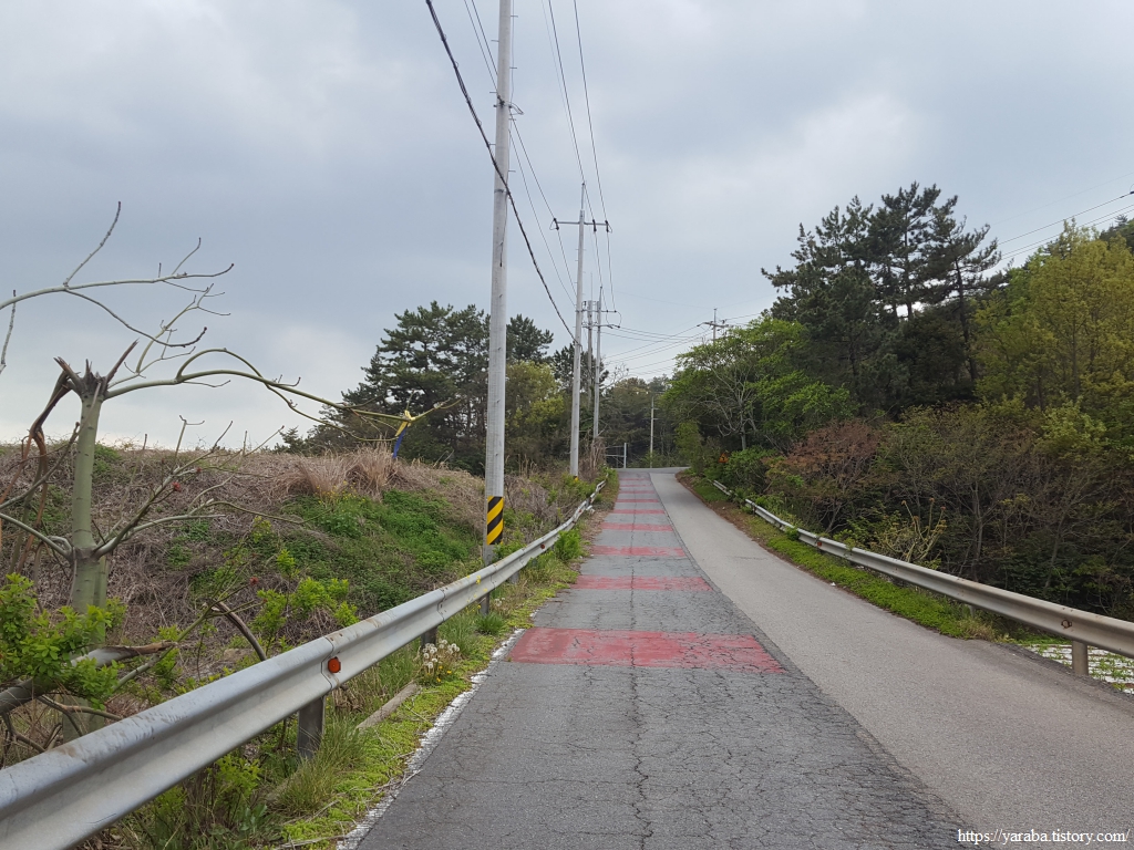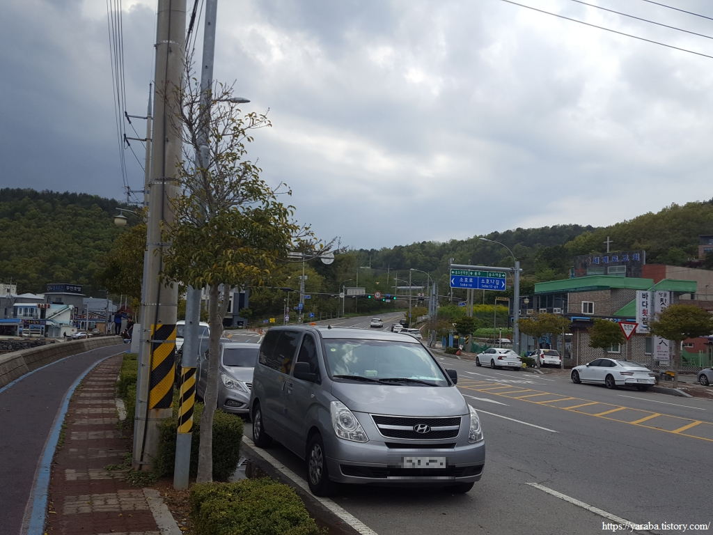 송소 마을을 돌아 나가면 승마장 앞에서 다시 소호로 도로를 만나서 도로를 따라 걷는다. 이제 여수 시내를 벗어나 화양면 용주리로 들어선다.
