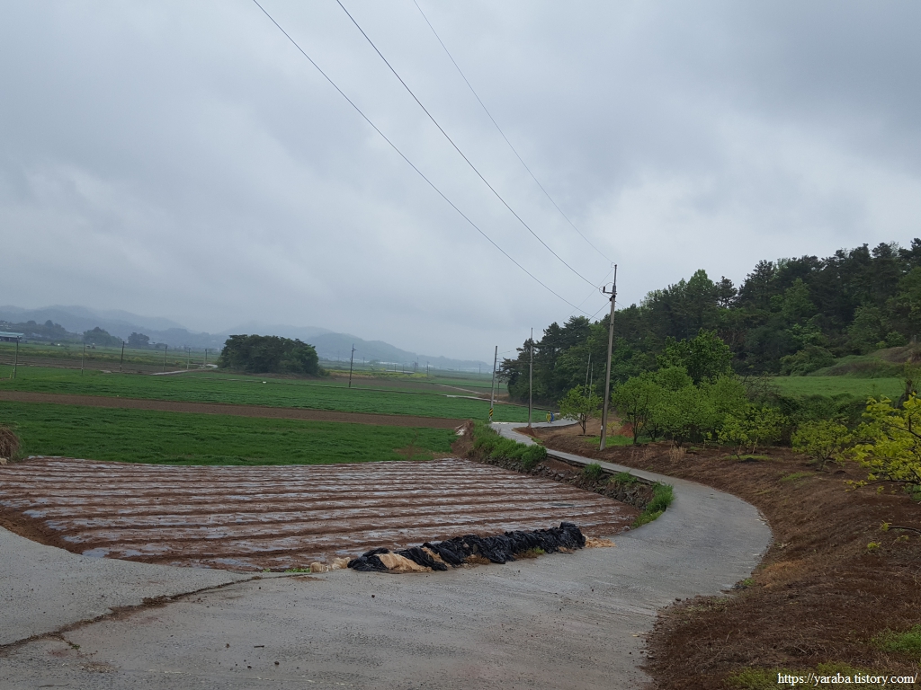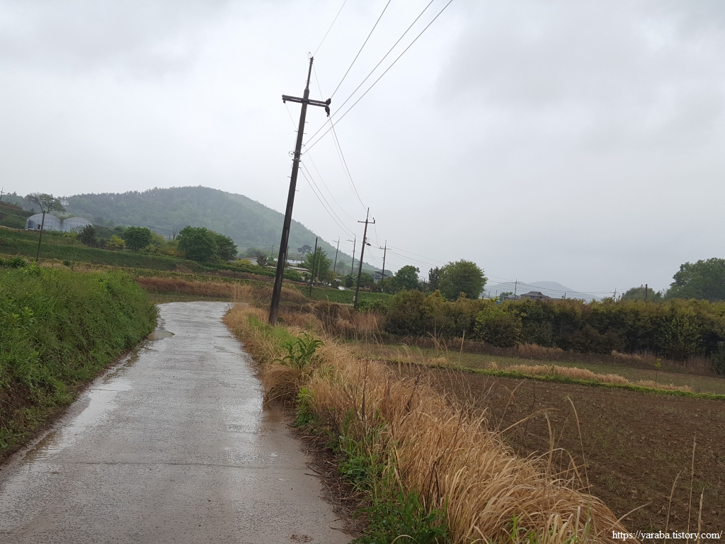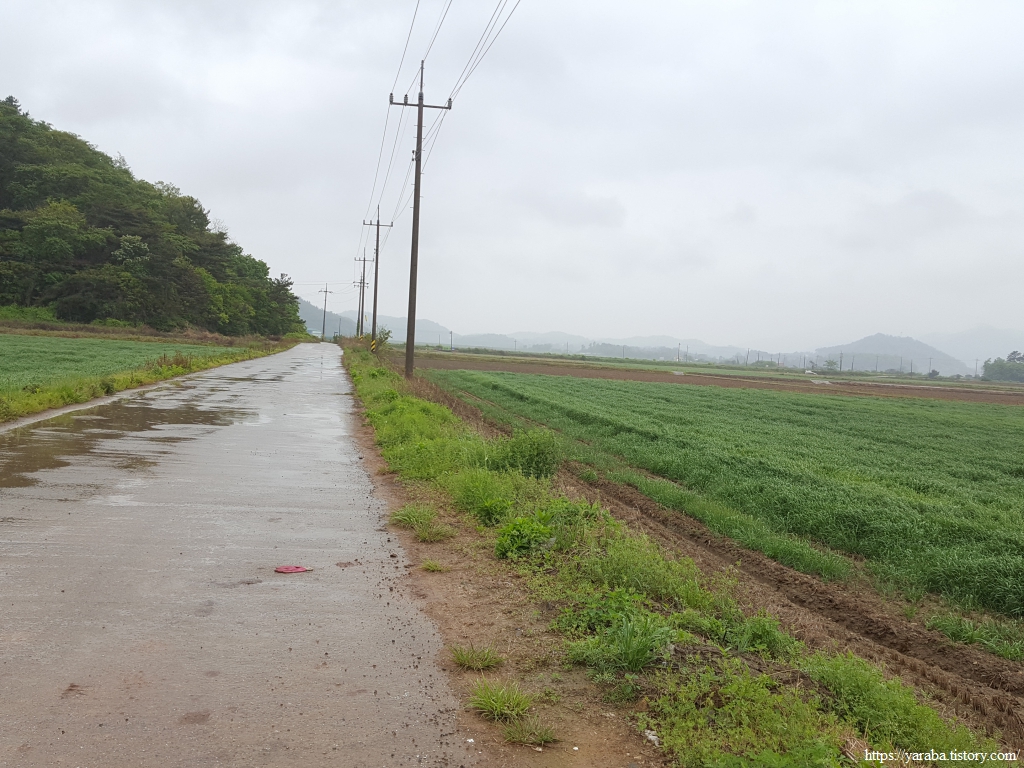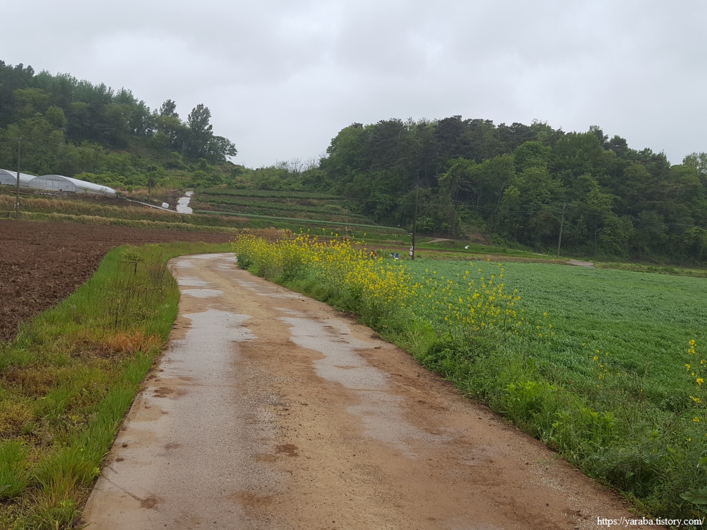봄비가 촉촉이 내리는 가운데 우비와 판초우의를 둘러쓴 세명은 철벅철벅 들길을 걸어간다. 심한 비가 아니지만 가끔씩 등장하는 물웅덩이를 요리조리 피하는 맛이 있다. 어릴 적 비가 오면 신발 젖는 것도 옷이 젖는 것도 물이 지저분한 것도 개의치 않고 웅덩이를 첨벙거리면 돌아다니던 때가 아련하게 떠오른다.