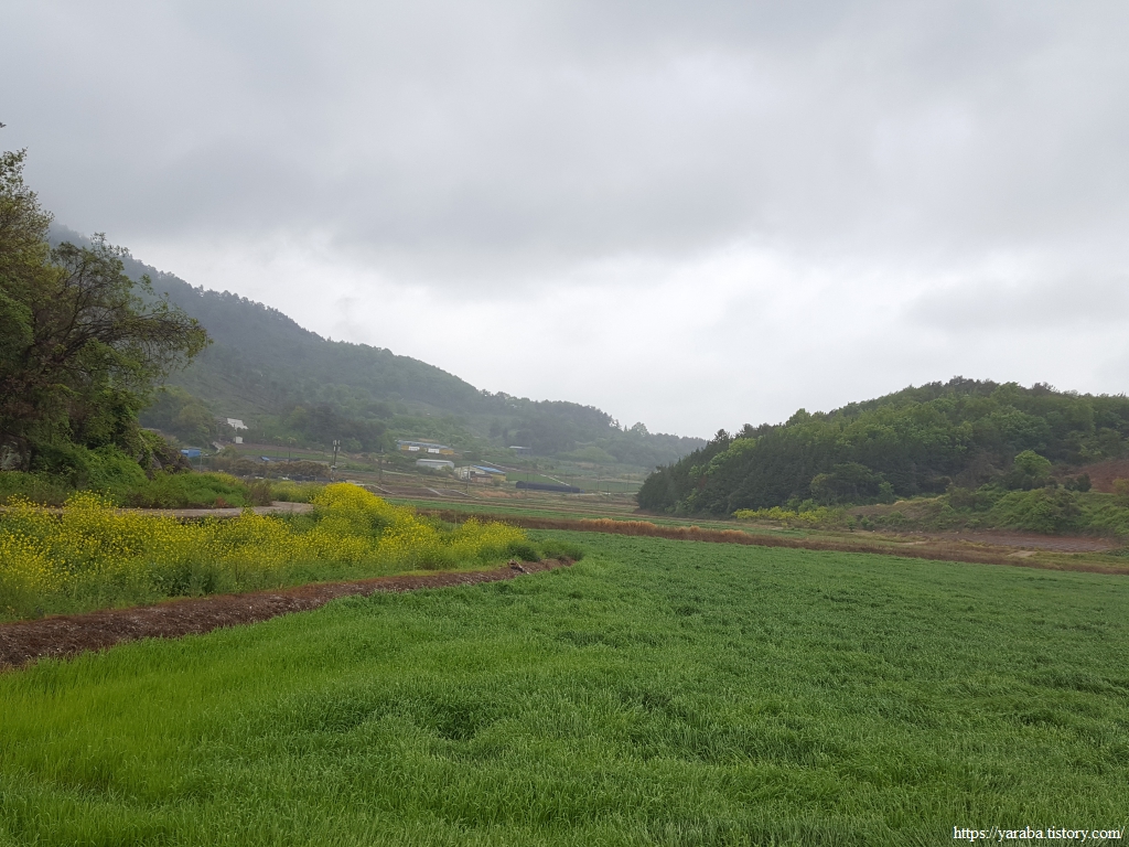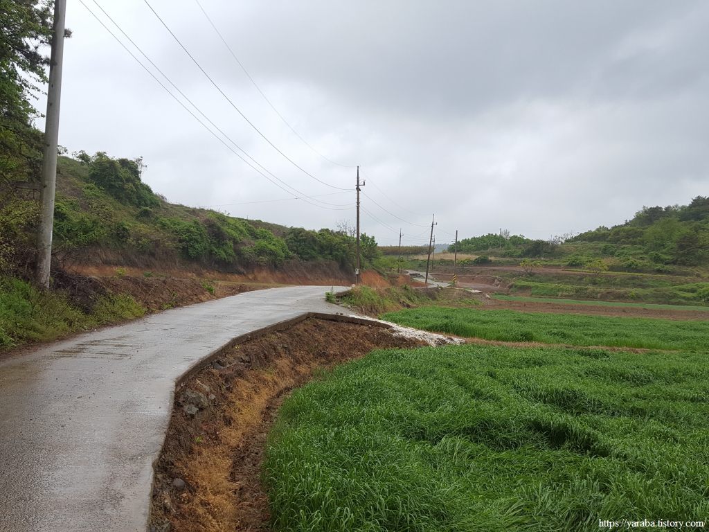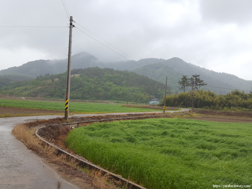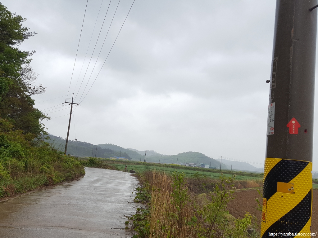 봄비가 촉촉이 내리는 가운데 우비와 판초우의를 둘러쓴 세명은 철벅철벅 들길을 걸어간다. 심한 비가 아니지만 가끔씩 등장하는 물웅덩이를 요리조리 피하는 맛이 있다. 어릴 적 비가 오면 신발 젖는 것도 옷이 젖는 것도 물이 지저분한 것도 개의치 않고 웅덩이를 첨벙거리면 돌아다니던 때가 아련하게 떠오른다.