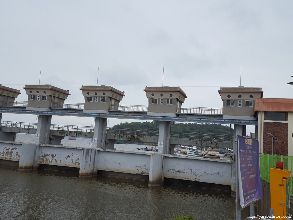 옹암교차로에서 남양 월정리 방면으로 좌회전하면 죽암방조제를 걷는다.