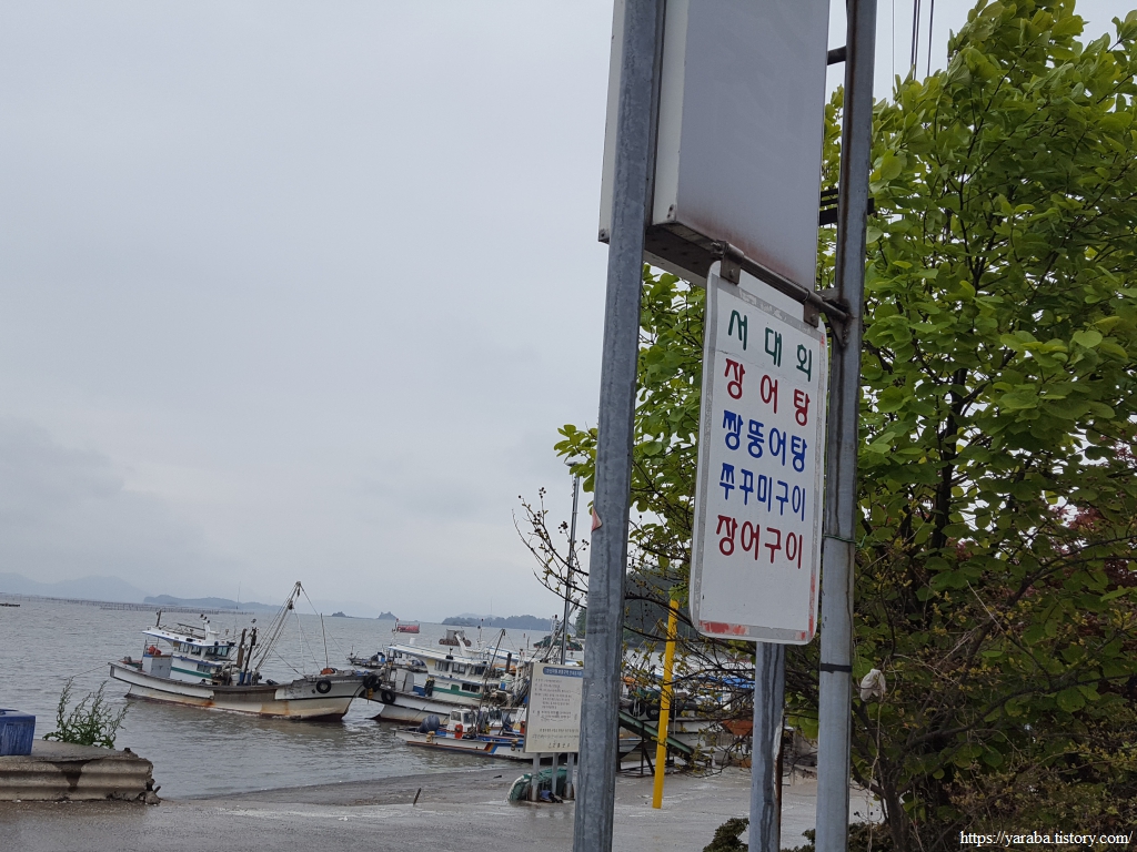 밀물 때인지 수문 앞 포구에는 물이 차기 시작했다. 때마침 점심때라 식당 앞에 걸린 메뉴판의 짱뚱어탕에 눈길이 갔지만, 동네 아저씨들이 이미 자리를 잡고 계셔서 선뜻 식당에 들어갈 수가 없었다. 조금 아쉬운 마음이었지만 그냥 가던 길을 가기로 한다.