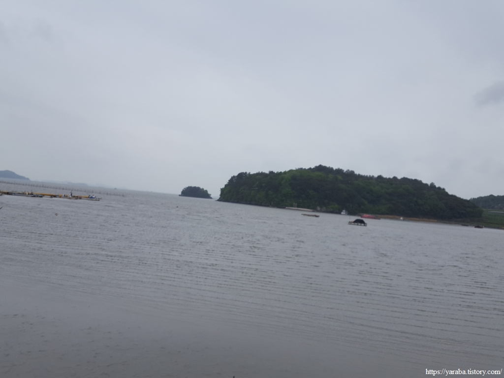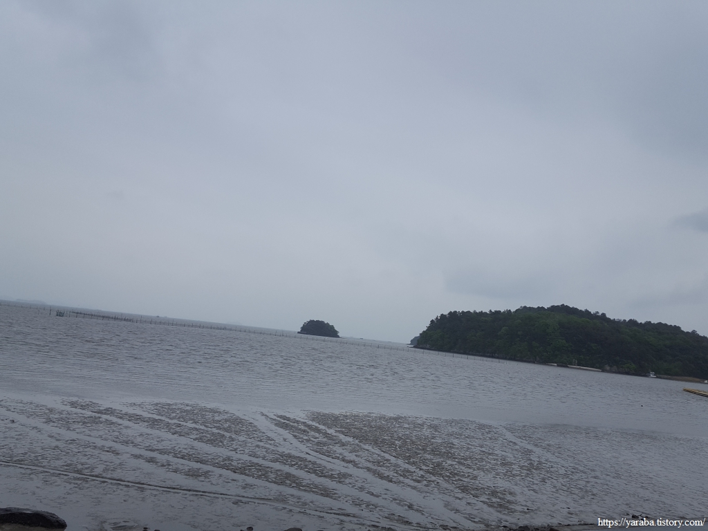 바다 건너편으로는 왕주마을의 작은 야산과 앞바다의 작은 섬이 외롭게 떠있다.