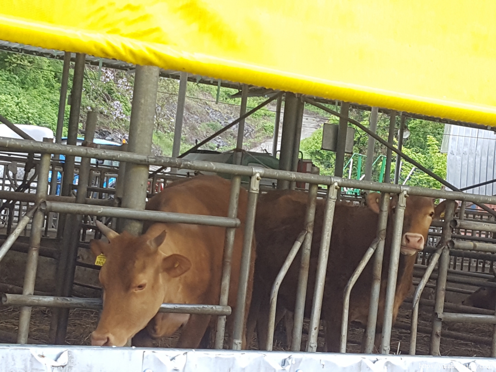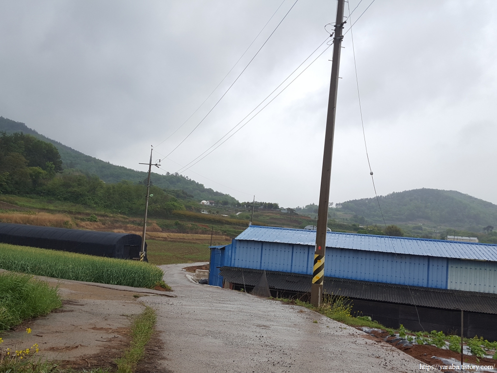 한우 농가를 지나는데 소들이 비 내리는 가운데 걷는 우리를 아이고! 하며 불쌍하게 보는 눈빛이다.