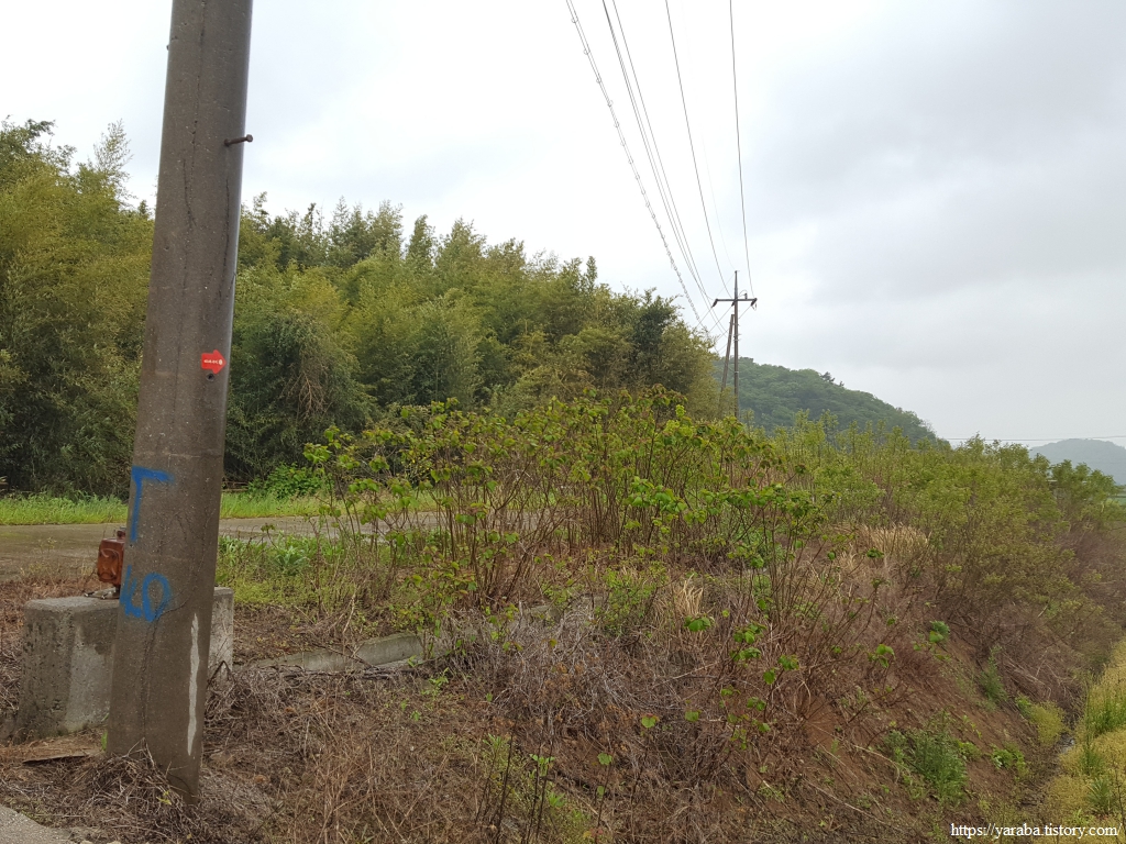 구릉을 일구어 만든 망주마을의 논들은 모내기 준비가 한창이다. 남파랑길에서는 거의 만나지 못하는 산악회 리본들이 가득 붙어 있다. 산악회 사람들이 참다 참다가 붙인 모양이다. 무엇인가 흔적을 남기고 싶어 하는 사람들의 마음을 어찌하리오!